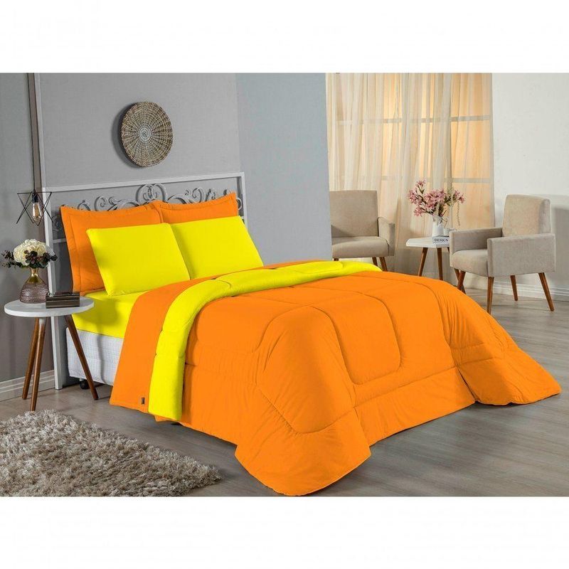 Kit Edredom Dupla Face + Jogo De Lençol Casal Viúva Nobre 7 Peças Malha 100% Algodão - Laranja / AmareloGaranta a experiência completa de conforto e decoração com o Kit Cama Completa Casal Viúva Nobre 7 Peças. Este conjunto premium inclui todas as peças necessárias para vestir a cama, do lençol de cima ao edredom, tudo em malha 100% algodão. Essa medida especial foi feita para as camas cama casal viúva ou solteiro viúva.Por que este Kit é uma ótima escolha?- Enxoval Completo: Diferente dos kits básicos, este modelo inclui o Lençol de Cima, ideal para dias frescos e para proteger o edredom, garantindo higiene e conforto térmico.- Qualidade da Malha: Feito em 100% Algodão Fio 30/1 Penteado, oferece toque macio, não dá bolinhas e é altamente respirável.- Decoração Impecável: O edredom dupla face e o porta travesseiro matelado decoram a cama, enquanto o jogo de lençóis completo traz a sensação de cama de hotel.- Ajuste Seguro: O lençol de baixo com elástico fixa-se firmemente ao colchão Casal viúva.Produto composto por (Total 07 Peças):Do Kit Edredom (03 Peças):01 Edredom Casal Viúva Dupla Face: 2,00m x 2,20m02 Porta Travesseiro Matelado: 50cm x 70cmDo Jogo de Lençol (04 Peças):01 Lençol de Cima (Virol) Casal 2,40m x 2,20m01 Lençol Casal Viúva com Elástico 1,28m x 1,98m x 30cm02 Fronha: 70cm x 50cmComposição:Tecido (Todas as peças): Malha 100% Algodão - Fio 30/1 PenteadoEnchimento (Edredom e Porta Travesseiro): 100% Poliéster (Edredom com fibra siliconada)Forro (Apenas Porta Travesseiro): 100% Polipropileno