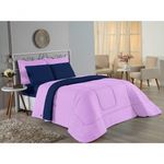 Kit Edredom Dupla Face + Jogo De Lençol Casal Viúva Nobre 7 Peças Malha 100% Algodão - Lilás / Azul-marinhoGaranta a experiência completa de conforto e decoração com o Kit Cama Completa Casal Viúva Nobre 7 Peças. Este conjunto premium inclui todas as peças necessárias para vestir a cama, do lençol de cima ao edredom, tudo em malha 100% algodão. Essa medida especial foi feita para as camas cama casal viúva ou solteiro viúva.Por que este Kit é uma ótima escolha?- Enxoval Completo: Diferente dos kits básicos, este modelo inclui o Lençol de Cima, ideal para dias frescos e para proteger o edredom, garantindo higiene e conforto térmico.- Qualidade da Malha: Feito em 100% Algodão Fio 30/1 Penteado, oferece toque macio, não dá bolinhas e é altamente respirável.- Decoração Impecável: O edredom dupla face e o porta travesseiro matelado decoram a cama, enquanto o jogo de lençóis completo traz a sensação de cama de hotel.- Ajuste Seguro: O lençol de baixo com elástico fixa-se firmemente ao colchão Casal viúva.Produto composto por (Total 07 Peças):Do Kit Edredom (03 Peças):01 Edredom Casal Viúva Dupla Face: 2,00m x 2,20m02 Porta Travesseiro Matelado: 50cm x 70cmDo Jogo de Lençol (04 Peças):01 Lençol de Cima (Virol) Casal 2,40m x 2,20m01 Lençol Casal Viúva com Elástico 1,28m x 1,98m x 30cm02 Fronha: 70cm x 50cmComposição:Tecido (Todas as peças): Malha 100% Algodão - Fio 30/1 PenteadoEnchimento (Edredom e Porta Travesseiro): 100% Poliéster (Edredom com fibra siliconada)Forro (Apenas Porta Travesseiro): 100% Polipropileno