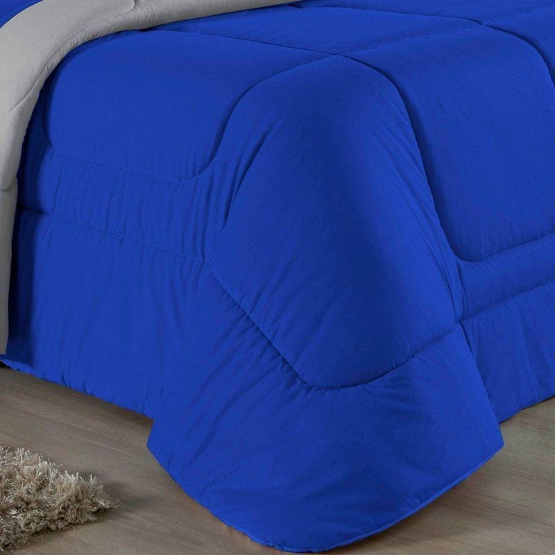 Kit Edredom Dupla Face + Jogo De Lençol Casal Viúva Nobre 7 Peças Malha 100% Algodão - Royal / CinzaGaranta a experiência completa de conforto e decoração com o Kit Cama Completa Casal Viúva Nobre 7 Peças. Este conjunto premium inclui todas as peças necessárias para vestir a cama, do lençol de cima ao edredom, tudo em malha 100% algodão. Essa medida especial foi feita para as camas cama casal viúva ou solteiro viúva.Por que este Kit é uma ótima escolha?- Enxoval Completo: Diferente dos kits básicos, este modelo inclui o Lençol de Cima, ideal para dias frescos e para proteger o edredom, garantindo higiene e conforto térmico.- Qualidade da Malha: Feito em 100% Algodão Fio 30/1 Penteado, oferece toque macio, não dá bolinhas e é altamente respirável.- Decoração Impecável: O edredom dupla face e o porta travesseiro matelado decoram a cama, enquanto o jogo de lençóis completo traz a sensação de cama de hotel.- Ajuste Seguro: O lençol de baixo com elástico fixa-se firmemente ao colchão Casal viúva.Produto composto por (Total 07 Peças):Do Kit Edredom (03 Peças):01 Edredom Casal Viúva Dupla Face: 2,00m x 2,20m02 Porta Travesseiro Matelado: 50cm x 70cmDo Jogo de Lençol (04 Peças):01 Lençol de Cima (Virol) Casal 2,40m x 2,20m01 Lençol Casal Viúva com Elástico 1,28m x 1,98m x 30cm02 Fronha: 70cm x 50cmComposição:Tecido (Todas as peças): Malha 100% Algodão - Fio 30/1 PenteadoEnchimento (Edredom e Porta Travesseiro): 100% Poliéster (Edredom com fibra siliconada)Forro (Apenas Porta Travesseiro): 100% Polipropileno