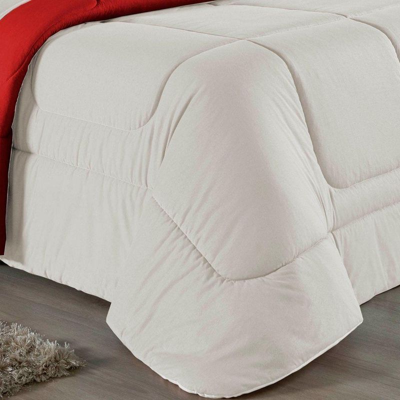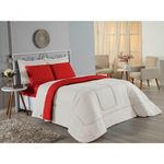Kit Edredom Dupla Face + Jogo De Lençol King Nobre 6 Peças Malha 100% Algodão - Palha / VermelhoExperimente a grandiosidade e o conforto supremo com o Kit Cama Completa King Nobre 6 Peças. Projetado para camas King Size, este conjunto une cobertura ampla, estilo moderno e a suavidade da malha pura.Por que este Kit é uma ótima escolha?- Maxi Conforto: O edredom King (2,50m x 2,90m) oferece cobertura total, enquanto o lençol de baixo se ajusta perfeitamente a colchões grandes.- Toque de Seda: Confeccionado inteiramente em Malha 100% Algodão Fio 30/1 Penteado, proporcionando uma experiência de sono luxuosa e respirável.- Estilo e Textura: A combinação do edredom liso com os porta travesseiros matelados adiciona sofisticação imediata ao quarto.- Resistência: O tratamento de fio penteado assegura que o tecido permaneça macio e sem bolinhas por muito mais tempo.Produto composto por (Total 06 Peças):Do Kit Edredom (03 Peças):01 Edredom King Dupla Face: 2,50m x 2,90m02 Porta Travesseiros Matelados: 50cm x 70cmDo Jogo de Lençol (03 Peças):01 Lençol de Baixo com Elástico: 1,93m x 2,03m x 30cm02 Fronhas: 50cm x 70cmAtenção: Este kit é composto pelo jogo de cama essencial (lençol com elástico e fronhas) e não inclui o lençol de cima (sobre lençol).Composição:Tecido (Todas as peças): Malha 100% Algodão - Fio 30/1 PenteadoEnchimento (Edredom e Porta Travesseiros): 100% Poliéster (Edredom com fibra siliconada)Forro (Apenas Porta Travesseiros): 100% Polipropileno