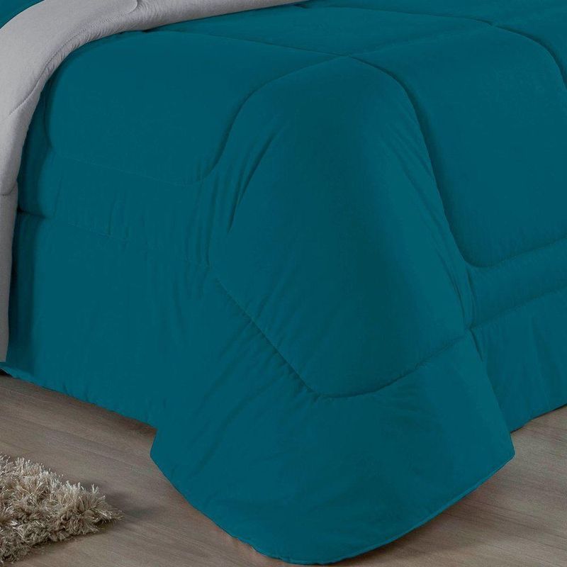 Kit Edredom Dupla Face + Jogo De Lençol King Nobre 6 Peças Malha 100% Algodão - Petróleo / CinzaExperimente a grandiosidade e o conforto supremo com o Kit Cama Completa King Nobre 6 Peças. Projetado para camas King Size, este conjunto une cobertura ampla, estilo moderno e a suavidade da malha pura.Por que este Kit é uma ótima escolha?- Maxi Conforto: O edredom King (2,50m x 2,90m) oferece cobertura total, enquanto o lençol de baixo se ajusta perfeitamente a colchões grandes.- Toque de Seda: Confeccionado inteiramente em Malha 100% Algodão Fio 30/1 Penteado, proporcionando uma experiência de sono luxuosa e respirável.- Estilo e Textura: A combinação do edredom liso com os porta travesseiros matelados adiciona sofisticação imediata ao quarto.- Resistência: O tratamento de fio penteado assegura que o tecido permaneça macio e sem bolinhas por muito mais tempo.Produto composto por (Total 06 Peças):Do Kit Edredom (03 Peças):01 Edredom King Dupla Face: 2,50m x 2,90m02 Porta Travesseiros Matelados: 50cm x 70cmDo Jogo de Lençol (03 Peças):01 Lençol de Baixo com Elástico: 1,93m x 2,03m x 30cm02 Fronhas: 50cm x 70cmAtenção: Este kit é composto pelo jogo de cama essencial (lençol com elástico e fronhas) e não inclui o lençol de cima (sobre lençol).Composição:Tecido (Todas as peças): Malha 100% Algodão - Fio 30/1 PenteadoEnchimento (Edredom e Porta Travesseiros): 100% Poliéster (Edredom com fibra siliconada)Forro (Apenas Porta Travesseiros): 100% Polipropileno