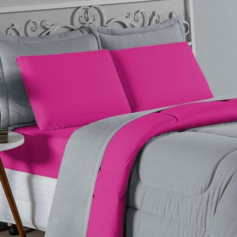 Kit Edredom Dupla Face + Jogo De Lençol King Nobre 7 Peças Malha 100% Algodão - Cinza / PinkO máximo em luxo e conforto para o seu descanso: Kit Cama Completa King Nobre 7 Peças. Um enxoval majestoso que oferece cobertura total para camas King Size, com a qualidade superior da malha penteada.Por que este Kit é uma ótima escolha?- Cobertura Total King: O lençol de cima e o edredom possuem medidas generosas (até 2,90m de largura), garantindo caimento perfeito e noites sem guerra de coberta.- Malha 100% Algodão: O Fio 30/1 Penteado proporciona um toque de seda, excelente respirabilidade e resistência contra a formação de bolinhas.- Kit Tudo em Um: Solução completa com edredom quentinho, porta travesseiros decorativos e jogo de lençóis completo para higiene e conforto térmico.- Decoração Coordenada: Peças que conversam entre si, com texturas mateladas e acabamentos lisos para um visual clean e sofisticado.Produto composto por (Total 07 Peças):Do Kit Edredom (03 Peças):01 Edredom King Dupla Face: 2,50m x 2,90m02 Porta Travesseiros Matelados: 50cm x 70cmDo Jogo de Lençol (04 Peças):01 Lençol de Cima (Virol): 2,50m x 2,90m01 Lençol de Baixo com Elástico: 1,93m x 2,03m x 30cm02 Fronhas: 70cm x 50cmComposição:Tecido (Todas as peças): Malha 100% Algodão - Fio 30/1 PenteadoEnchimento (Edredom e Porta Travesseiros): 100% Poliéster (Edredom com fibra siliconada)Forro (Apenas Porta Travesseiros): 100% Polipropileno
