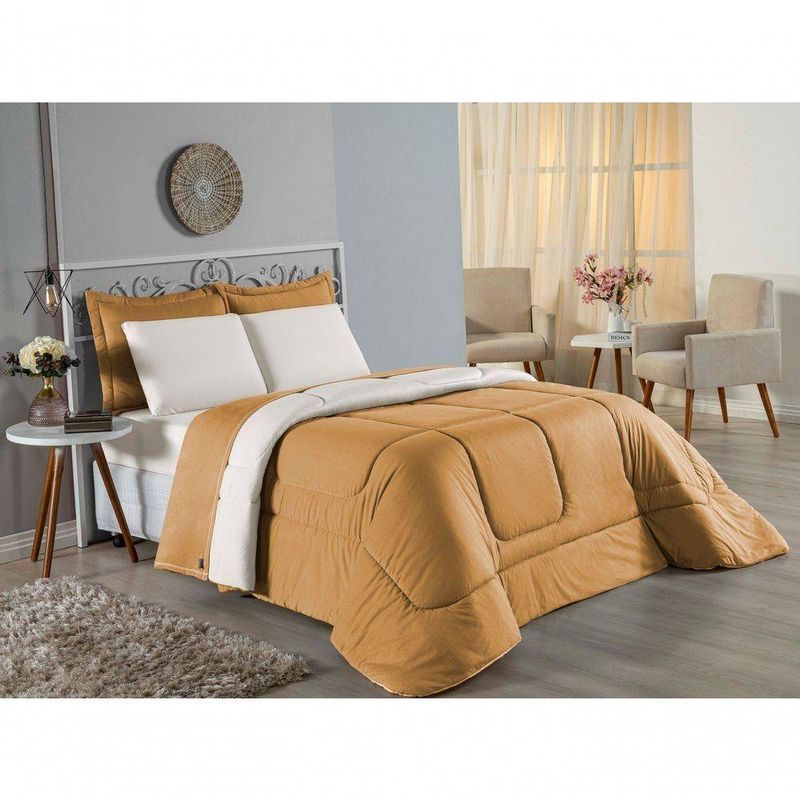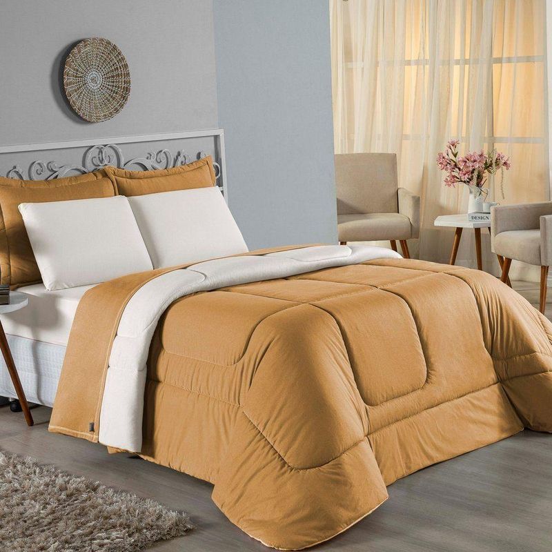 Kit Edredom Dupla Face + Jogo De Lençol King Nobre 7 Peças Malha 100% Algodão - Cobre / PalhaO máximo em luxo e conforto para o seu descanso: Kit Cama Completa King Nobre 7 Peças. Um enxoval majestoso que oferece cobertura total para camas King Size, com a qualidade superior da malha penteada.Por que este Kit é uma ótima escolha?- Cobertura Total King: O lençol de cima e o edredom possuem medidas generosas (até 2,90m de largura), garantindo caimento perfeito e noites sem guerra de coberta.- Malha 100% Algodão: O Fio 30/1 Penteado proporciona um toque de seda, excelente respirabilidade e resistência contra a formação de bolinhas.- Kit Tudo em Um: Solução completa com edredom quentinho, porta travesseiros decorativos e jogo de lençóis completo para higiene e conforto térmico.- Decoração Coordenada: Peças que conversam entre si, com texturas mateladas e acabamentos lisos para um visual clean e sofisticado.Produto composto por (Total 07 Peças):Do Kit Edredom (03 Peças):01 Edredom King Dupla Face: 2,50m x 2,90m02 Porta Travesseiros Matelados: 50cm x 70cmDo Jogo de Lençol (04 Peças):01 Lençol de Cima (Virol): 2,50m x 2,90m01 Lençol de Baixo com Elástico: 1,93m x 2,03m x 30cm02 Fronhas: 70cm x 50cmComposição:Tecido (Todas as peças): Malha 100% Algodão - Fio 30/1 PenteadoEnchimento (Edredom e Porta Travesseiros): 100% Poliéster (Edredom com fibra siliconada)Forro (Apenas Porta Travesseiros): 100% Polipropileno