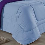 Kit Edredom Dupla Face + Jogo De Lençol Queen Nobre 6 Peças Malha 100% Algodão - Azul-bebê / RoxoEleve o nível de conforto da sua cama Queen com o Kit Cama Completa Queen Nobre 6 Peças. Um conjunto coordenado que oferece a maciez incomparável da malha de algodão e a praticidade que sua rotina exige.Por que este Kit é uma ótima escolha?- Malha Nobre: Produzido em 100% Algodão Fio 30/1 Penteado, o kit é hipoalergênico, fresco e extremamente agradável ao toque.- Decoração Rica: Inclui edredom dupla face e porta travesseiros com acabamento matelado, criando uma cama posta volumosa e convidativa.- Praticidade Essencial: Focado nas peças que você mais usa, o kit traz o lençol com elástico firme para colchões Queen e fronhas macias para o rosto.- Qualidade Garantida: Tecido que não dá bolinha e enchimento de edredom que aquece na medida certa.Produto composto por (Total 06 Peças):Do Kit Edredom (03 Peças):01 Edredom Queen Dupla Face: 2,20m x 2,40m02 Porta Travesseiros Matelados: 50cm x 70cmDo Jogo de Lençol (03 Peças):01 Lençol de Baixo com Elástico: 1,58m x 1,98m x 30cm02 Fronhas: 70cm x 50cmAtenção: Este kit é composto pelo jogo de cama essencial (lençol com elástico e fronhas) e não inclui o lençol de cima (sobre lençol).Composição:Tecido (Todas as peças): Malha 100% Algodão - Fio 30/1 PenteadoEnchimento (Edredom e Porta Travesseiros): 100% Poliéster (Edredom com fibra siliconada)Forro (Apenas Porta Travesseiros): 100% Polipropileno