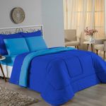 Kit Edredom Dupla Face + Jogo De Lençol Queen Nobre 6 Peças Malha 100% Algodão - Royal / TurquesaEleve o nível de conforto da sua cama Queen com o Kit Cama Completa Queen Nobre 6 Peças. Um conjunto coordenado que oferece a maciez incomparável da malha de algodão e a praticidade que sua rotina exige.Por que este Kit é uma ótima escolha?- Malha Nobre: Produzido em 100% Algodão Fio 30/1 Penteado, o kit é hipoalergênico, fresco e extremamente agradável ao toque.- Decoração Rica: Inclui edredom dupla face e porta travesseiros com acabamento matelado, criando uma cama posta volumosa e convidativa.- Praticidade Essencial: Focado nas peças que você mais usa, o kit traz o lençol com elástico firme para colchões Queen e fronhas macias para o rosto.- Qualidade Garantida: Tecido que não dá bolinha e enchimento de edredom que aquece na medida certa.Produto composto por (Total 06 Peças):Do Kit Edredom (03 Peças):01 Edredom Queen Dupla Face: 2,20m x 2,40m02 Porta Travesseiros Matelados: 50cm x 70cmDo Jogo de Lençol (03 Peças):01 Lençol de Baixo com Elástico: 1,58m x 1,98m x 30cm02 Fronhas: 70cm x 50cmAtenção: Este kit é composto pelo jogo de cama essencial (lençol com elástico e fronhas) e não inclui o lençol de cima (sobre lençol).Composição:Tecido (Todas as peças): Malha 100% Algodão - Fio 30/1 PenteadoEnchimento (Edredom e Porta Travesseiros): 100% Poliéster (Edredom com fibra siliconada)Forro (Apenas Porta Travesseiros): 100% Polipropileno