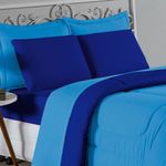 Kit Edredom Dupla Face + Jogo De Lençol Queen Nobre 6 Peças Malha 100% Algodão - Turquesa / RoyalEleve o nível de conforto da sua cama Queen com o Kit Cama Completa Queen Nobre 6 Peças. Um conjunto coordenado que oferece a maciez incomparável da malha de algodão e a praticidade que sua rotina exige.Por que este Kit é uma ótima escolha?- Malha Nobre: Produzido em 100% Algodão Fio 30/1 Penteado, o kit é hipoalergênico, fresco e extremamente agradável ao toque.- Decoração Rica: Inclui edredom dupla face e porta travesseiros com acabamento matelado, criando uma cama posta volumosa e convidativa.- Praticidade Essencial: Focado nas peças que você mais usa, o kit traz o lençol com elástico firme para colchões Queen e fronhas macias para o rosto.- Qualidade Garantida: Tecido que não dá bolinha e enchimento de edredom que aquece na medida certa.Produto composto por (Total 06 Peças):Do Kit Edredom (03 Peças):01 Edredom Queen Dupla Face: 2,20m x 2,40m02 Porta Travesseiros Matelados: 50cm x 70cmDo Jogo de Lençol (03 Peças):01 Lençol de Baixo com Elástico: 1,58m x 1,98m x 30cm02 Fronhas: 70cm x 50cmAtenção: Este kit é composto pelo jogo de cama essencial (lençol com elástico e fronhas) e não inclui o lençol de cima (sobre lençol).Composição:Tecido (Todas as peças): Malha 100% Algodão - Fio 30/1 PenteadoEnchimento (Edredom e Porta Travesseiros): 100% Poliéster (Edredom com fibra siliconada)Forro (Apenas Porta Travesseiros): 100% Polipropileno