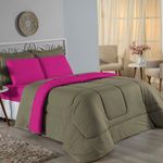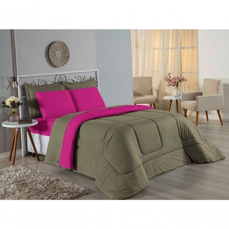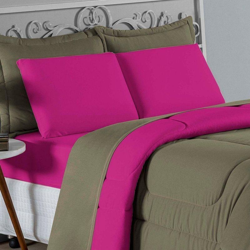 Kit Edredom Dupla Face + Jogo De Lençol Queen Nobre 7 Peças Malha 100% Algodão - Avelã / PinkTransforme seu quarto em uma suíte master com o Kit Cama Completa Queen Nobre 7 Peças. Sofisticação, qualidade e conforto se unem neste conjunto que veste sua cama Queen por completo, do lençol ao edredom.Por que este Kit é uma ótima escolha?- Experiência de Hotel: Com 7 peças, incluindo lençol de cima amplo e edredom volumoso, sua cama ficará sempre convidativa e elegante.- Toque Suave e Natural: Produzido em Malha 100% Algodão Fio 30/1 Penteado, o tecido é fresco, macio e extremamente durável.- Detalhes que Importam: Porta travesseiros matelados para decoração e fronhas macias para dormir, garantindo beleza e funcionalidade.- Caimento Perfeito: Lençóis desenvolvidos para colchões Queen, garantindo ajuste firme e cobertura ideal.Produto composto por (Total 07 Peças):Do Kit Edredom (03 Peças):01 Edredom Queen Dupla Face: 2,20m x 2,40m02 Porta Travesseiros Matelados: 50cm x 70cmDo Jogo de Lençol (04 Peças):01 Lençol de Cima (Virol): 2,40m x 2,60m01 Lençol de Baixo com Elástico: 1,58m x 1,98m x 30cm02 Fronhas: 70cm x 50cmComposição:Tecido (Todas as peças): Malha 100% Algodão - Fio 30/1 PenteadoEnchimento (Edredom e Porta Travesseiros): 100% Poliéster (Edredom com fibra siliconada)Forro (Apenas Porta Travesseiros): 100% Polipropileno