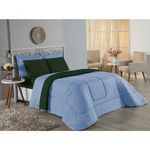 Kit Edredom Dupla Face + Jogo De Lençol Solteiro Nobre 4 Peças Malha 100% Algodão - Azul-bebê / Verde-bandeiraRenove o quarto das crianças ou de visitas com o Kit Cama Completa Solteiro Nobre 4 Peças. Uma solução prática e extremamente confortável que une o aquecimento do edredom, a elegância do porta travesseiro matelado e a suavidade do jogo de lençol em malha 100% algodão.Por que este Kit é uma ótima escolha?- Conforto da Malha Penteada: Todas as peças em contato com a pele são feitas em Malha 100% Algodão Fio 30/1 Penteado, garantindo toque macio, frescor e alta durabilidade sem formar bolinhas.- Cama Posta Coordenada: O kit já vem combinando! O edredom dupla face e o porta travesseiro decoram, enquanto o lençol e a fronha vestem o colchão com perfeição.- Praticidade do Elástico: O lençol de baixo possui elástico em toda a volta, facilitando a arrumação diária e garantindo que ele não escape do colchão.- Aconchego Térmico: O edredom com enchimento siliconado oferece o peso e o calor ideais para uma noite de sono tranquila.Produto composto por (Total 04 Peças):Do Kit Edredom (02 Peças):01 Edredom Solteiro Dupla Face: 1,60m x 2,40m01 Porta Travesseiro Matelado: 50cm x 70cmDo Jogo de Lençol (02 Peças):01 Lençol de Baixo com Elástico: 1,88m x 88cm x 30cm01 Fronha: 70cm x 50cmAtenção: Este kit é composto pelo jogo de cama essencial (lençol com elástico e fronha) e não inclui o lençol de cima (sobre lençol).Composição:Tecido (Todas as peças): Malha 100% Algodão - Fio 30/1 PenteadoEnchimento (Edredom e Porta Travesseiro): 100% Poliéster (Edredom com fibra siliconada)Forro (Apenas Porta Travesseiro): 100% Polipropileno