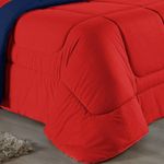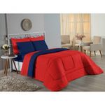 Kit Edredom Dupla Face + Jogo De Lençol Solteiro Nobre 4 Peças Malha 100% Algodão - Vermelho / Azul-marinhoRenove o quarto das crianças ou de visitas com o Kit Cama Completa Solteiro Nobre 4 Peças. Uma solução prática e extremamente confortável que une o aquecimento do edredom, a elegância do porta travesseiro matelado e a suavidade do jogo de lençol em malha 100% algodão.Por que este Kit é uma ótima escolha?- Conforto da Malha Penteada: Todas as peças em contato com a pele são feitas em Malha 100% Algodão Fio 30/1 Penteado, garantindo toque macio, frescor e alta durabilidade sem formar bolinhas.- Cama Posta Coordenada: O kit já vem combinando! O edredom dupla face e o porta travesseiro decoram, enquanto o lençol e a fronha vestem o colchão com perfeição.- Praticidade do Elástico: O lençol de baixo possui elástico em toda a volta, facilitando a arrumação diária e garantindo que ele não escape do colchão.- Aconchego Térmico: O edredom com enchimento siliconado oferece o peso e o calor ideais para uma noite de sono tranquila.Produto composto por (Total 04 Peças):Do Kit Edredom (02 Peças):01 Edredom Solteiro Dupla Face: 1,60m x 2,40m01 Porta Travesseiro Matelado: 50cm x 70cmDo Jogo de Lençol (02 Peças):01 Lençol de Baixo com Elástico: 1,88m x 88cm x 30cm01 Fronha: 70cm x 50cmAtenção: Este kit é composto pelo jogo de cama essencial (lençol com elástico e fronha) e não inclui o lençol de cima (sobre lençol).Composição:Tecido (Todas as peças): Malha 100% Algodão - Fio 30/1 PenteadoEnchimento (Edredom e Porta Travesseiro): 100% Poliéster (Edredom com fibra siliconada)Forro (Apenas Porta Travesseiro): 100% Polipropileno