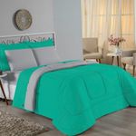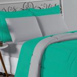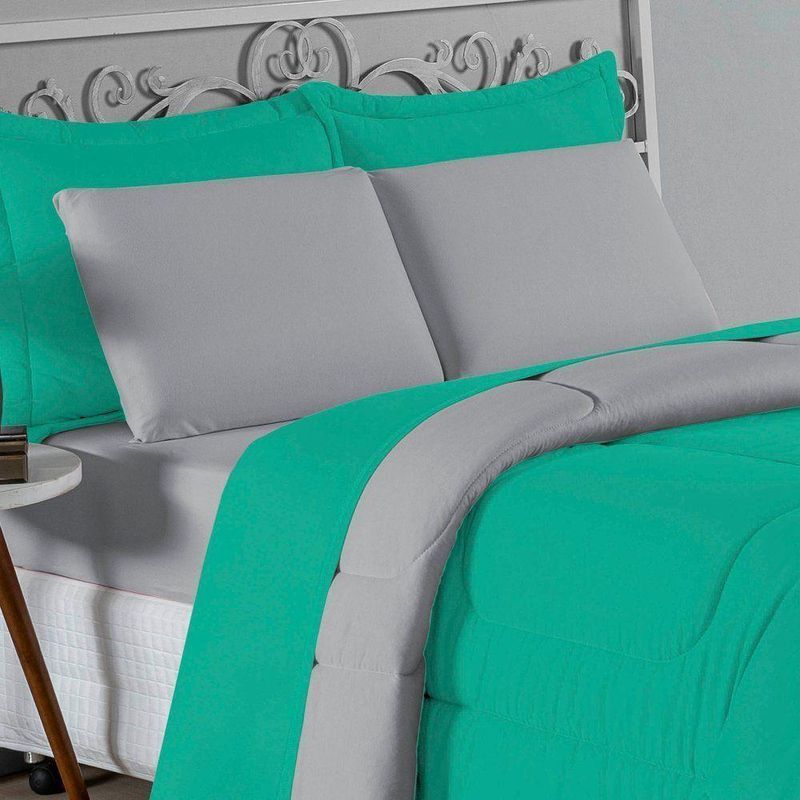 Kit Edredom Dupla Face + Jogo De Lençol Solteiro Nobre 5 Peças Malha 100% Algodão - Jade / CinzaGaranta a experiência completa de conforto e decoração com o Kit Cama Completa Solteiro Nobre 5 Peças. Este conjunto premium inclui todas as peças necessárias para vestir a cama, do lençol de cima ao edredom, tudo em malha 100% algodão.Por que este Kit é uma ótima escolha?- Enxoval Completo: Diferente dos kits básicos, este modelo inclui o Lençol de Cima, ideal para dias frescos e para proteger o edredom, garantindo higiene e conforto térmico.- Qualidade da Malha: Feito em 100% Algodão Fio 30/1 Penteado, oferece toque macio, não dá bolinhas e é altamente respirável.- Decoração Impecável: O edredom dupla face e o porta travesseiro matelado decoram a cama, enquanto o jogo de lençóis completo traz a sensação de cama de hotel.- Ajuste Seguro: O lençol de baixo com elástico fixa-se firmemente ao colchão solteiro.Produto composto por (Total 05 Peças):Do Kit Edredom (02 Peças):01 Edredom Solteiro Dupla Face: 1,60m x 2,40m01 Porta Travesseiro Matelado: 50cm x 70cmDo Jogo de Lençol (03 Peças):01 Lençol de Cima (Virol): 1,60m x 2,40m01 Lençol de Baixo com Elástico: 1,88m x 88cm x 30cm01 Fronha: 70cm x 50cmComposição:Tecido (Todas as peças): Malha 100% Algodão - Fio 30/1 PenteadoEnchimento (Edredom e Porta Travesseiro): 100% Poliéster (Edredom com fibra siliconada)Forro (Apenas Porta Travesseiro): 100% Polipropileno