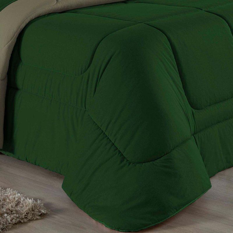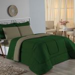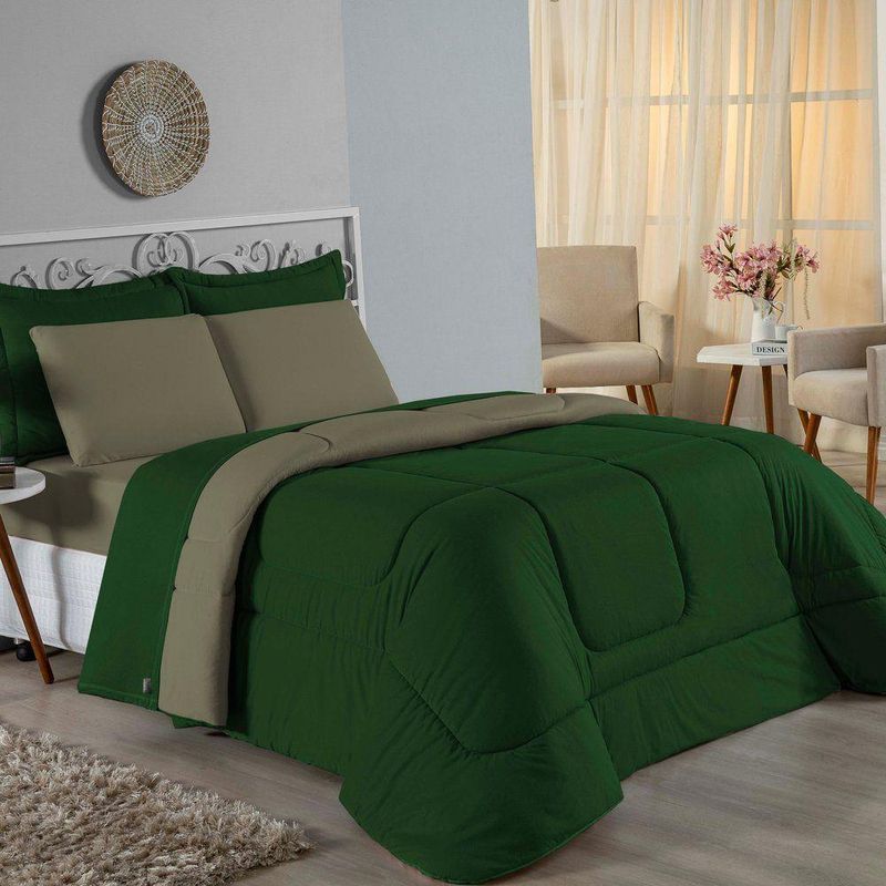 Kit Edredom Dupla Face + Jogo De Lençol Solteiro Nobre 5 Peças Malha 100% Algodão - Verde-bandeira / AvelãGaranta a experiência completa de conforto e decoração com o Kit Cama Completa Solteiro Nobre 5 Peças. Este conjunto premium inclui todas as peças necessárias para vestir a cama, do lençol de cima ao edredom, tudo em malha 100% algodão.Por que este Kit é uma ótima escolha?- Enxoval Completo: Diferente dos kits básicos, este modelo inclui o Lençol de Cima, ideal para dias frescos e para proteger o edredom, garantindo higiene e conforto térmico.- Qualidade da Malha: Feito em 100% Algodão Fio 30/1 Penteado, oferece toque macio, não dá bolinhas e é altamente respirável.- Decoração Impecável: O edredom dupla face e o porta travesseiro matelado decoram a cama, enquanto o jogo de lençóis completo traz a sensação de cama de hotel.- Ajuste Seguro: O lençol de baixo com elástico fixa-se firmemente ao colchão solteiro.Produto composto por (Total 05 Peças):Do Kit Edredom (02 Peças):01 Edredom Solteiro Dupla Face: 1,60m x 2,40m01 Porta Travesseiro Matelado: 50cm x 70cmDo Jogo de Lençol (03 Peças):01 Lençol de Cima (Virol): 1,60m x 2,40m01 Lençol de Baixo com Elástico: 1,88m x 88cm x 30cm01 Fronha: 70cm x 50cmComposição:Tecido (Todas as peças): Malha 100% Algodão - Fio 30/1 PenteadoEnchimento (Edredom e Porta Travesseiro): 100% Poliéster (Edredom com fibra siliconada)Forro (Apenas Porta Travesseiro): 100% Polipropileno