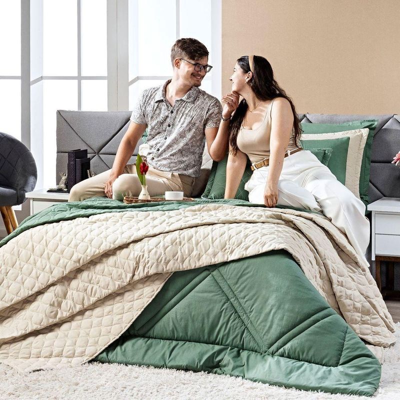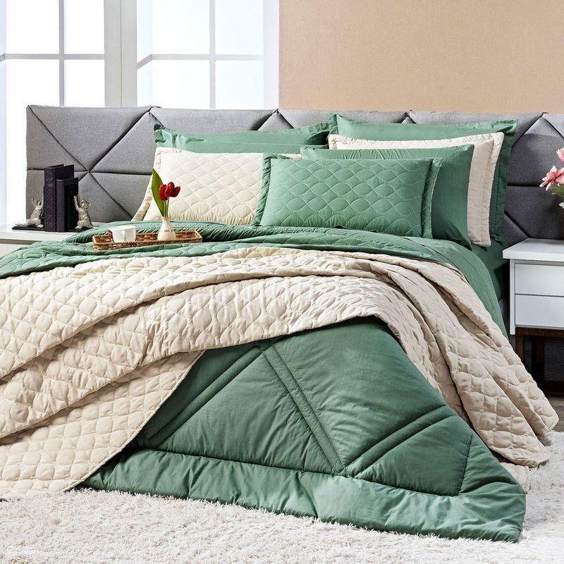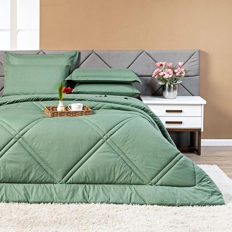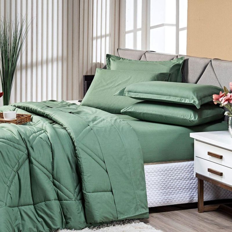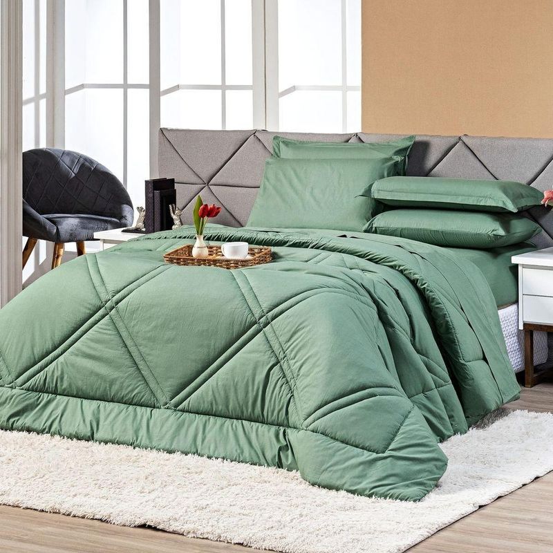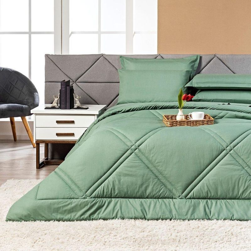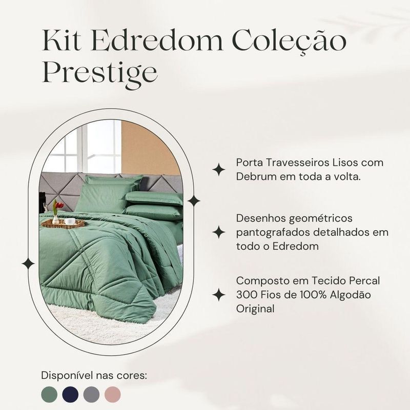 Kit Edredom Liso Queen Prestige Dupla Face Com Fronhas 03 Peças - Tecido Percal 300 Fios 100% Algodão Original Cor VerdeApresentamos o espetacular Kit Edredom Prestige, a essência do luxo e do conforto para o seu refúgio pessoal! Este kit não é apenas uma adição à sua cama; é uma declaração de estilo e qualidade incomparável. Confeccionado com tecido liso percal de 300 fios, cada toque é uma experiência de suavidade e requinte, proporcionando noites de sono verdadeiramente revigorantes. Fabricado com 100% algodão, este conjunto garante não apenas conforto supremo, mas também durabilidade excepcional. A praticidade do design dupla face permite que você utilize qualquer um dos dois lados do edredom, adaptando-se perfeitamente ao seu dia-a-dia. Com duas fronhas coordenadas, o conjunto cria uma estética coesa e elegante, elevando instantaneamente o visual do seu espaço. Mime-se com o conforto indulgente e a qualidade inigualável do Kit Edredom Prestige. Criado para aqueles que valorizam não apenas o sono reparador, mas também o estilo e o requinte em cada detalhe. Não apenas um produto, mas um investimento em seu bem-estar e na estética do seu lar. Experimente o luxo definitivo e transforme suas noites em uma experiência de puro deleite. Adquira agora e mergulhe na indulgência de um sono verdadeiramente celestial! Confira!Contém:01 Edredom Dupla Face Casal Queen 2,60m x 2,50m 02 Porta Travesseiros Lisos com Debrum 70cm x 50cm OBS: Jogo de Lençol Vendido Separadamente.Composição Edredom:Tecido: Percal 300 Fios 100% Algodão OriginalEnchimento: 100% poliésterInstruções de Uso e Lavagem:Vide etiqueta do produto.Atenção:Foto meramente ilustrativa.Variação das cores podem ocorrer de acordo com o monitor.