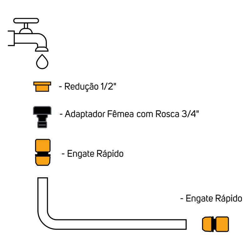 Cod. Fornecedor: FW008670Marca: Wap O Kit Engate Rápido Simples WAP GKERS01 é ideal para acompanhar nas tarefas de jardinagem ou na limpeza do quintal. O kit acompanha o Adaptador Fêmea WAP, um facilitador para o sistema de irrigação, com rosca externa 3/4" e componente extra de redução 1/2", e o Engate Rápido WAP, peça que faz a conexão tipo click dos acessórios de irrigação, através de 3 garras. Juntos se adaptam a todo o sistema de irrigação, se encaixando para o uso sem complicações, através de sistema intercambiável. Usado em mangueira de 1/2”, faz a ligação do sistema unindo a rede de água com os pontos de saída.Para utilizar é simples, não necessita de ferramentas para a montagem, basta encaixar os acessórios na torneira.TIPO DE CONEXÃO: 1/2"PRODUTOS COMPATÍVEIS: Conector de Engate rápido - WAP GCER01MATERIAIS: Polímeros e borrachaCOR: Amarelo e pretoCOMPONENTESAdaptador fêmea com rosca 3/4" e redução 1/2";Engate Rápido - WAP GER01.