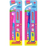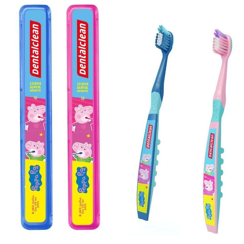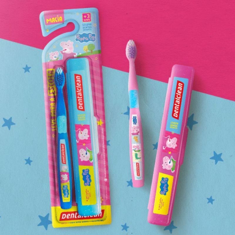 Kit Escova + Estojo Peppa Pig - Macia - 3 Anos+ DentalcleanESCOVA ESCOLAR PEPPA PIG - MACIA - 3 ANOS+ - DENTALCLEANA Escova Dental Infantil possui cabo emborrachado, cerdas arredondadas e polidas que garantem conforto na hora da escovação.Acompanha um prático estojo de material plástico, ideal para levar a . Ela é ideal para transformar a higiene oral em uma missão divertida para seus filhos e sem para você, afinal, escovar os dentes também pode ser divertido.Um estojo prático para levar para ou para viagens, e a escova certa para deixar os dentes de seus filhos longe do grande inimigo, as Cáries.Recomendada para crianças de 3 a 6 anos.A escova possui cabo ergonômico que proporciona maior e conforto na hora da escovação, possui power tip, ponta de cerdas com corte perfeito para limpar até os últimos dentes. Além disso, conta com os personagens em seu cabo, é o incentivo perfeito para as crianças fazerem a higienização diariamente.A capinha protetora armazena a escova e protege de bactérias e sugeiras desagradáveis que possam prejudicar a saúde bocal da criança.Esse KIT contém:1 Escova Dental Infantil Escolar Peppa Pig MACIA1 Estojo para escova de dente