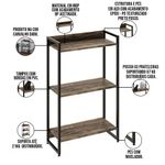 Com o Kit Escritório Estante Areta 3 Prateleiras Mesa Industrial Aspen 90cm C01 Carvalho Dark - Lyam Decor , o conceito industrial ficará evidente no seu ambiente, tornando o mesmo muito mais moderno, sofisticado e organizado, garantindo isso com 03 prateleiras que deixam tudo prático e funcional. Uma característica muito forte dos móveis industriais é a união do tubular de estrutura exposta com a madeira, que dão todo o charme para agregar no estilo que está entre os mais buscados no ramo de arquitetura e decoração. Dimensões da Estante (L x A x P) 60 x 104 x 30 cm Medidas Internas: Altura da prateleira: 39,7cm Largura da prateleira: 56cm Dimensões da Mesa (L x A x P) 90 x 75 x 50 cm Características da Estante: 03 prateleiras produzidas em MDP, com acabamento em BP acetinado. Pés em tubo de aço com sapatas niveladoras e acabamento em pintura texturizada epóxi, responsável por criar alta resistência á umidade e produtos químicos, facilitando também na limpeza e manutenção. Fita de borda em PVC. Solda com acabamento suavizado. Produto na cor Carvalho Dark. Suporta até 7 kg por prateleira. Características da Mesa: Tampo produzido em MDP, com acabamento em BP acetinado. Pés em tubo de aço niveladoras e acabamento em pintura texturizada epóxi, responsável por criar alta resistência á umidade e produtos químicos, facilitando também na limpeza e manutenção. Fita de borda em PVC. Solda com acabamento suavizado. Produto na cor Carvalho Dark. Suporta até 30 kg. Produto entregue desmontado, acompanha manual de montagem. Para a limpeza, utilize flanela seca. Evite contato com produtos químicos (solventes, thinner, acetona, etc) e não utilize nenhum tipo de esponja de aço. Observações importantes: A montagem será de responsabilidade do comprador; Responsabilizamo-nos pela entrega em todo território nacional, até onde as rodovias alcançam, entregas fluviais ou aéreas devem ser cotadas a parte; As imagens são ilustrativas, não acompanham objetos de decoração e eletrônicos; Não nos responsabilizamos, no ato da entrega, por subir escadas/elevadores ou transporte por guincho em apartamentos. Eventuais despesas são de responsabilidade do comprador; Confira as dimensões do produto e certifique-se de que passará normalmente por supostos elevadores, portas, escadas e/ou corredores de sua residência;
