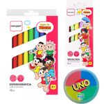 KIT ESFEROGRÁFICA + BRUSH PEN TURMA DA MÔNICA + MASSINHA UNO BRUSH PEN TURMA DA MÔNICA PERFUMADA - 6 CORES - NEWPEN Para quem ama arte e criatividade, as Brush Pens Perfumadas da Turma da Mônica são uma explosão de cores e aromas! Cada pacote traz 6 canetas sortidas, perfeitas para dar vida aos seus desenhos e caligrafias. Com pontas macias e flexíveis, elas permitem traços precisos de 2-4mm, sejam finos ou mais grossos, proporcionando um controle incrível sobre cada detalhe. Além das cores vibrantes, essas canetas exalam um suave perfume de melância, tornando o momento da criação ainda mais prazeroso. Essas canetas são ideais tanto para quem está começando quanto para os mais experientes no mundo das artes. Imagine, por exemplo, a possibilidade de criar uma ilustração com um traço delicado em um momento e, logo em seguida, fazer uma linha firme e marcante, tudo com a mesma ferramenta! Além disso, com a qualidade da Turma da Mônica, que já encanta gerações, a diversão é garantida. Aposte na união perfeita entre arte, diversão e aquele toque especial de fragrância, e transforme qualquer projeto em uma verdadeira obra-prima! INMETRO OCP 0116 | Registro 005 122/ 2022 CANETA ESFEROGRÁFICA RETRÁTIL TURMA DA MÔNICA PERFUMADA - 10 CORES - NEWPEN Kit caneta esferográfica retrátil da Turma da Mônica com 10 cores vibrantes e perfumadas! Com tinta gel liquida que desliza quando você escreve, ponta 0.7mm. Para você usar no estojo, na bolsa, no trabalho, em casa. As canetas da Turma da Mônica vão encantar várias gerações. Cores: Preto, Verde Claro, Laranja, Roxo, Marrom, Amarelo, Vermelho, Azul, Rosa, Azul Claro. Todas as cores tem um cheirinho único e super especial!Item novo, lacrado e original.Contém 10 Canetas esferográfica retrátil perfumada Turma da Mônica NewPen. INMETRO OCP 0116 | Registro 005 338/2022 STIICA E PULA MASSINHA AIR CLAY 20g UNO - DOCE BRINQUEDO Massinha que estica, semelhante a uma slime, pula e pode ser modelada! Com as cores icônicas do jogo UNO. Há várias brincadeiras que as crianças irão adorar. Solte a criatividade fazendo esculturas, bolas que quicam de massinha; e marque nosso perfil! Recomendado para crianças com mais de 3 anos. Inmetro: 011787/2022. O kit contem: 1 ESFEROGRÁFICA RETRÁTIL TURMA DA MÔNICA PERFUMADA 10 CORES - NEWPEN 1 BRUSH PEN TURMA DA MÔNICA PERFUMADA - 6 CORES - NEWPEN 1 STIICA E PULA MASSINHA AIR CLAY 20g UNO - DOCE BRINQUEDO