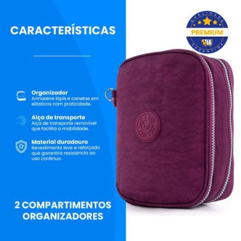 Kit Estojo Escolar Lápis Nylon Ziper Resistente Escolar Com Organizador De Lápis Mais Canetinhas Coloridas Marca TextoKit Estojo Escolar Grande com Mini Marca Texto – Organização e Diversão para Seus EstudosTransforme sua experiência escolar ou com o Kit Estojo Escolar Grande com Mini Marca Texto Berinjela. Ideal para manter seus materiais organizados e destacar suas anotações com estilo, este conjunto combina funcionalidade, durabilidade e um toque de criatividade.O estojo Box Jumbo acomoda até 20 canetas ou acessórios diversos, garantindo praticidade e segurança com compartimentos de elástico e fechamento em velcro. Os 6 mini marca-textos em formato de berinjela adicionam diversão ao destacar textos, tornando o estudo mais prazeroso.Benefícios:Organização Completa: Estojo com 20 compartimentos elásticos para manter seus materiais no lugar.Estilo Personalizado: Disponível em cores vibrantes para combinar com sua personalidade.Durabilidade Garantida: Fabricado em poliéster de alta qualidade, perfeito para uso diário.Estudo Diido: Mini marca-textos coloridos e temáticos para destacar suas ideias.Características:Estojo Escolar:Material: Poliéster resistente.Fechamento: Velcro.Compartimentos: 20 elásticos organizadores.Dimensões: 22 cm (C) x 6 cm (L) x 17 cm (A).Cores: Rosa claro, pink, preto, azul, verde e azul marinho.Mini Marca-Texto:Formato: Berinjela diida.Cores: Amarelo, azul, verde, laranja, rosa e roxo.Material: Plástico.Certificação: INMETRO 003076/2023.Conteúdo da Embalagem:1 Estojo Escolar Grande Box Jumbo com divisórias.6 Mini Marca-Textos (cores vibrantes).Por que escolher este kit?Este é o conjunto perfeito para quem busca unir organização e criatividade. Seja para estudantes ou profissionais, ele oferece praticidade e uma experiência única que transforma a rotina diária.Pronto para tornar seus estudos mais organizados e diidos? Adquira já!
