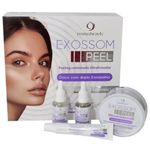 Kit Exossom Peel Peeling Ultrafirmador CosmobeautyO kit contém:1-Exossom Peel Concentrado Renovador 30ml1-Exossom Peel Máscara Intensiva 100g1-Exossom Peel Hidra Peeling- 30ml 1-Exossom Peel Reparador 30gO Kit Exossom Peel Cosmobeauty é um tratamento estético que visa promover a renovação celular da pele, proporcionando uma melhora na textura, luminosidade e aparência geral. O principal ativo deste kit são os exossomos, que são pequenas partículas provenientes de células, capazes de estimular processos regenerativos e de reparação celular. A função do Exossom Peel Cosmobeauty é realizar uma esfoliação química suave que ajuda a remover as células mortas da pele, ao mesmo tempo que estimula a produção de colágeno e a renovação da pele, deixando-a mais firme e rejuvenescida. Além disso, pode auxiliar no tratamento de manchas, rugas e outros sinais de envelhecimento, proporcionando uma pele mais uniforme e revitalizada.