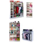 Kit de Expositores para Loja Colméia com Cabideiro Balcão com Arara e Estante com Prateleiras e Estante com NichosA Magia Móveis produz armários de uma beleza única, totalmente diferenciados e com muito espaço para armazenar e expor tudo o que você precisa. Feitos de MDP, muitíssimo bem embalados, o que garante que cheguem perfeitos para você. Seu espaço ficará super otimizado e magnificamente lindo!Kit com 4 expositores para loja, contendo:- 01 Colméia Ana- 01 Colméia Bia- 01 Estante Liz- 01 Balcão Arara Carol- Colméia Ana: dispõe de muito espaço tanto em prateleiras quanto em cabideiro. Altura: 1,82cm x Largura: 1,50c x Profundidade: 36cm *Caso necessite de maior altura em algum nicho, é possível excluir alguma prateleira no momento da montagem.- Estante Liz: possui 04 prateleiras, comporta todos os tipos de objetos e ainda ajuda a decorar a sua loja. Altura: 182cm x Largura: 57cm x Profundidade: 30cm- Colméia Bia: possui 15 nichos e é excelente para armazenar e expor, ajuda na decoração e deixa tudo organizado e bem visível. Altura: 182cm x Largura: 90cm x Profundidade: 34cm Dimensões de cada nicho: Altura 33cm x Largura 28cm- Balcão Arara Carol: perfeito para centro de loja, próximo à vitrine ou coladinho na parede. Nele você pendura várias peças de roupa e sobre o tampo poderá expor diversos objetos e até atender seus clientes. Altura: 97cm x Largura: 84cm x Profundidade: 36cmMarca: Magia MóveisGarantia: 03 meses contra defeitos de fabricação