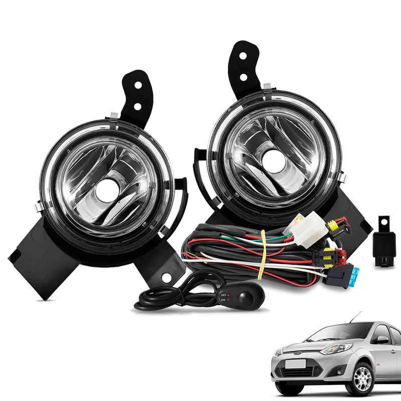 Kit Farol de Milha Auxiliar Fiesta 2007 a 2009 Ka 2008 a 2011 Botão Alternativo - Suits Os Farois de Milha Auxiliares Suits foram desenvolvidos para melhoria no sistema de iluminação do veículo, ideal para melhorar a visibilidade em situações como chuva, neblina intensa e períodos noturnos trazendo ao motorista uma direção mais segura, além de trazer um design diferenciado e único ao seu veículo. O kit conta com encaixe sob medida para seu veículo, lente lisa em Plástico Policarbonato, acompanhando 2 Faróis de Milha, regulagem de foco manual, relê, e botão Alternativo. Lâmpada Utilizada H3, acompanha kit de instalação completo com chicote feito em cobre resistente, suporta Xênon e Led (não acompanha lâmpada). Produto com excelente acabamento, resistente ao sol e a chuva. Sua melhor escolha para proporcionar maior design e segurança sem qualquer adaptação em seu veículo. Especificações Técnicas: Kit farol de milha STS405FD (lado direito e esquerdo) Acompanha Chicote e Rele 2 Faróis de Milha Material Da Lente: plástico Policarbonato Lâmpada utilizada:H3 Suporta Xenon e Led Encaixe Perfeito Tipo de regulagem: Manual Excelente Qualidade e Resistência Alta resistência ao sol e chuva Botão Alternativo Design Esportivo e Moderno Não Acompanha Lampada Tabela de Aplicação: Fiesta 2007 Fiesta 2008 Fiesta 2009 Ka 2008 Ka 2009 Ka 2010 Ka 2011 Compativel com todas as versões.