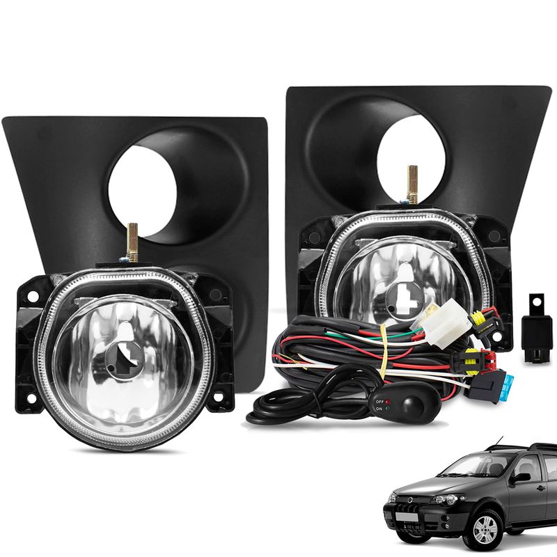 Kit Farol de Milha Auxiliar Palio Weekend Strada Adventure 2004 a 2007 Botão Alternativo - Suits Os Farois de Milha Auxiliares Suits foram desenvolvidos para melhoria no sistema de iluminação do veículo, ideal para melhorar a visibilidade em situações como chuva, neblina intensa e períodos noturnos trazendo ao motorista uma direção mais segura, além de trazer um design diferenciado e único ao seu veículo. O kit conta com encaixe sob medida para seu veículo, lente lisa em Plástico Policarbonato, acompanhando 2 Faróis de Milha, regulagem de foco manual, relê, e botão Alternativo. Lâmpada Utilizada H1, acompanha kit de instalação completo com chicote feito em cobre resistente, suporta Xênon e Led(não acompanha lâmpada). Produto com excelente acabamento, resistente ao sol e a chuva. Sua melhor escolha para proporcionar maior design e segurança sem qualquer adaptação em seu veículo. Especificações Técnicas: Kit farol de milha STS140FT (lado direito e esquerdo) Acompanha Chicote e Rele 2 Faróis de Milha 2 suporte para Farois Material Da Lente: plástico Policarbonato Lâmpada utilizada:H1 Suporta Xenon e Led Encaixe Perfeito Tipo de regulagem: Manual Excelente Qualidade e Resistência Alta resistência ao sol e chuva Botão Alternativo Design Esportivo e Moderno Não Acompanha Lampada Tabela de Aplicação: Strada 2004 Strada 2005 Strada 2006 Strada 2007 Compativel com a versão. Palio Weekend 2004 Palio Weekend 2005 Palio Weekend 2006 Palio Weekend 2007