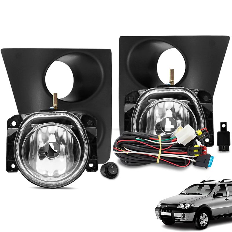 Kit Farol de Milha Auxiliar Palio Weekend Strada Adventure 2004 a 2007 Botão Tic Tac - Suits Os Farois de Milha Auxiliares Suits foram desenvolvidos para melhoria no sistema de iluminação do veículo, ideal para melhorar a visibilidade em situações como chuva, neblina intensa e períodos noturnos trazendo ao motorista uma direção mais segura, além de trazer um design diferenciado e único ao seu veículo. O kit conta com encaixe sob medida para seu veículo, lente lisa em Plástico Policarbonato, acompanhando 2 Faróis de Milha, regulagem de foco manual, relê, e botão Tic Tac. Lâmpada Utilizada H1, acompanha kit de instalação completo com chicote feito em cobre resistente, suporta Xênon e Led(não acompanha lâmpada). Produto com excelente acabamento, resistente ao sol e a chuva. Sua melhor escolha para proporcionar maior design e segurança sem qualquer adaptação em seu veículo. Especificações Técnicas: Kit farol de milha STS160FT (lado direito e esquerdo) Acompanha Chicote e Rele 2 Faróis de Milha 2 suporte para Farois Material Da Lente: plástico Policarbonato Lâmpada utilizada:H1 Suporta Xenon e Led Encaixe Perfeito Tipo de regulagem: Manual Excelente Qualidade e Resistência Alta resistência ao sol e chuva Botão Tic Tac Design Esportivo e Moderno Não Acompanha Lampada Tabela de Aplicação: Strada 2004 Strada 2005 Strada 2006 Strada 2007 Compativel com a versão. Palio Weekend 2004 Palio Weekend 2005 Palio Weekend 2006 Palio Weekend 2007