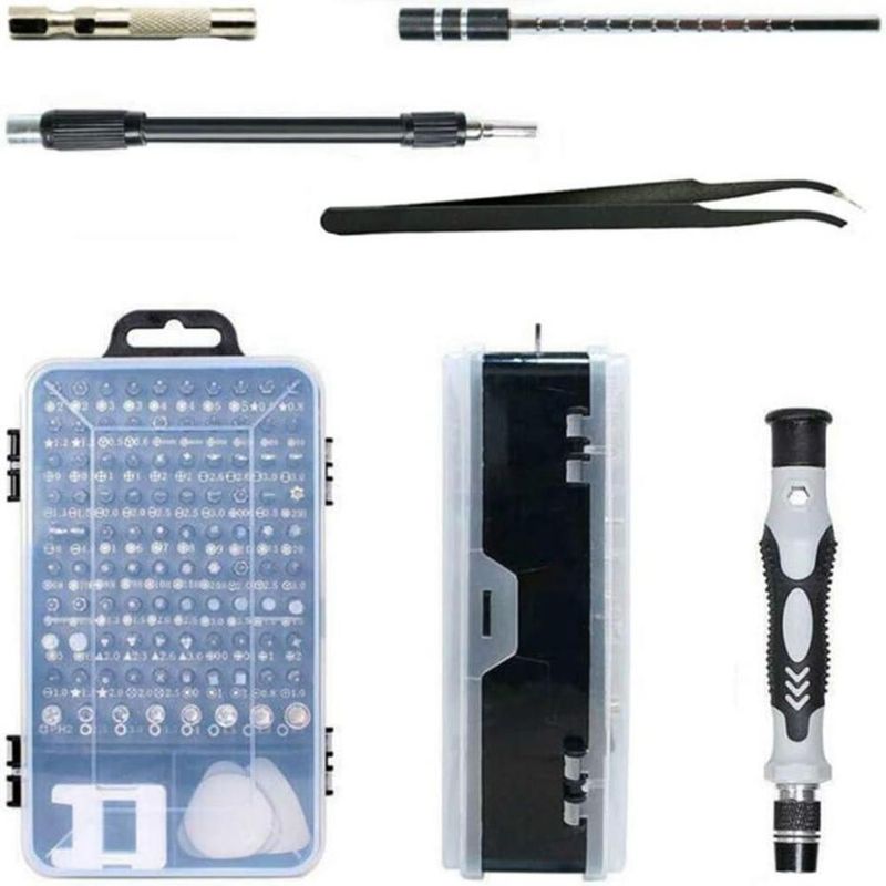 - Jogo profissional de precisão chaves 115x1, tem diferentes tipos de ferramentas projetadas para a reparação consoles de jogos, computadores, dispositivos móveis, câmeras de precisão e outros itens como relógios e óculos. - De alta qualidade e ampla aplicação: Feito de materiais de alta qualidade para maior durabilidade. Diferentes tipos de exercícios podem acomodar muitas formas de parafusos para atender todas as necessidades.- Equipado com uma caixa de armazenamento profissional: o kit de reparação é equipado com uma caixa de armazenamento feito de material de pp e é resistente ao choque. função magnética e desempenho: a dica sobre a chave de fenda magnética é muito conveniente quando o parafuso é puxado para fora ou o parafuso está alinhado com o buraco. - Uso do produto: ferramentas de manutenção, amplamente utilizado em telefones móveis, digitais, eletrodomésticos e outros campos. Especificações: Pacote inclui: 1 x Caixa (plástico) 157*90*52mm 1 x Eixo de extensão flexível 1 x Barra de extensão 128mm 1 x Pinça 122mm 3 x Ferramentas de alavanca de plástico (86mm e 82mm) 1 x Ferramentas de remoção de cartão sim 33mm 1 x Chave 98mm 1 x Ventosa 35mm 1 x Bloco magnetizar/desmagnetizar 1 x Agulha para remoção cartão sim 3 x Palhetas de abertura (35*37mm e 31*33mm) 1 x Suporte de broca para chave de fenda elétrica 1 x Adaptador sleeve 98 * bit chave de fenda Especificação de chave de fenda: Chave Torx: T2, T3, T4, T5, T5 Chave Pentalobe: 0.8, 1.2, 1.5, 2.0 Chave Tri wing: 0.6, 2, 2.5, 3 Chave Phillips: 0, PH0, PH1, PH1, PH2, Chave Spanner: U2.6, U3.0 Chave Fenda Simples: 1.0, 1.5, 2.0, 2.5, 3.0, 3.5, 4.0, Chave Torx 2: T1, T6, T7, T8, T9, T10, T15, T20 Chave torx com furo: T6H, T7H, T8, T9, T10, T15, T20, Chave Allen: 0.7, 0.9, 1.3, 1.5, 2.0, 2.5, 3.0, 3.5, 4.0, 4.5, 5, 6 Chave Triangular: 2.0, 2.3, 2.6, 3.0 Chave Pozidriv: 00, PZ0, PZ1, PZ2, Chave: 2.0, 2.5 Chave Robertson: V51, V50, V52 Chave Pino Agulha: 0.8, 1.0 Soquete Phillips: 2.0 Soquete Sextavado: 2.5, 3.0, 3.5, 4, 4.5, 5.0, 5.5