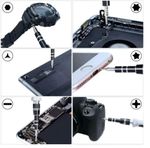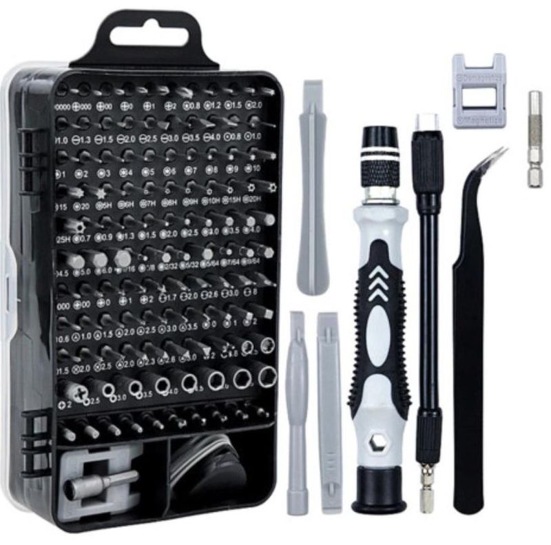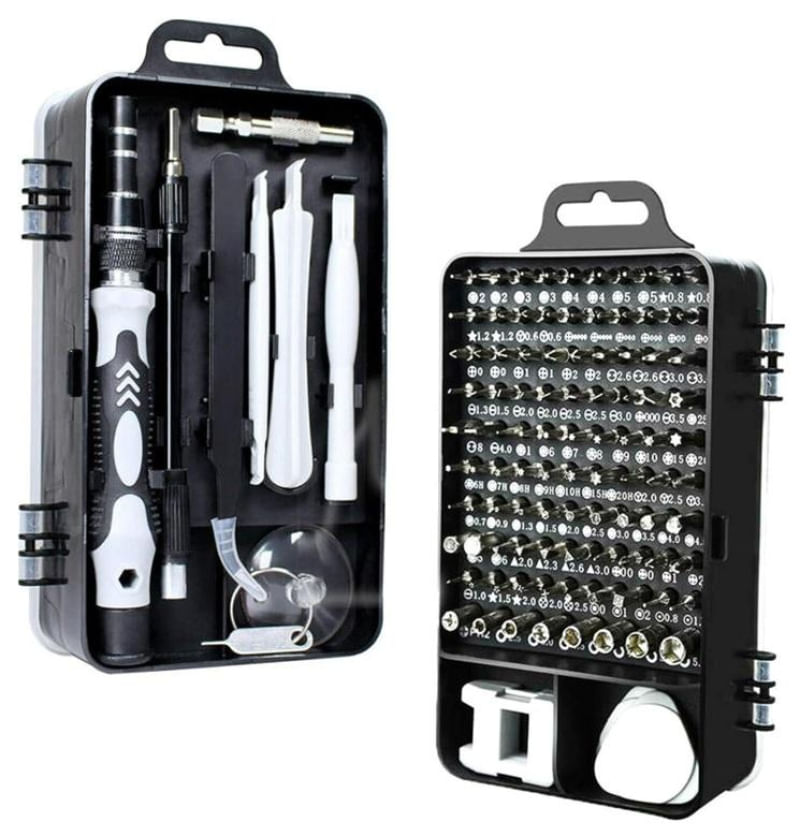 Kit Ferramenta 115 Chaves Precisão Reparo Manutenção Celular Notebook Tablet O Kit de Chaves 115x1, tem diferentes tipos de ferramentas projetadas para a reparação de consoles de jogos, computadores, dispositivos móveis, câmeras de precisão e outros itens como relógios e óculos. As ferramentas possuem alta eficiência e ampla aplicação. Além disso, são produzidas com materiais de alta qualidade para maior durabilidade, e o magnetismo presente na chave de fenda pode melhorar o desempenho e economizar tempo. Detalhes do Produto: - Jogo profissional de precisão chaves 115x1, tem diferentes tipos de ferramentas projetadas para a reparação consoles de jogos, computadores, dispositivos móveis, câmeras de precisão e outros itens como relógios e óculos. - De alta qualidade e ampla aplicação: Feito de materiais de alta qualidade para maior durabilidade. Diferentes tipos de exercícios podem acomodar muitas formas de parafusos para atender todas as necessidades.- Equipado com uma caixa de armazenamento profissional: o kit de reparação é equipado com uma caixa de armazenamento feito de material de pp e é resistente ao choque. função magnética e desempenho: a dica sobre a chave de fenda magnética é muito conveniente quando o parafuso é puxado para fora ou o parafuso está alinhado com o buraco. - Uso do produto: ferramentas de manutenção, amplamente utilizado em telefones móveis, digitais, eletrodomésticos e outros campos. Especificações: Pacote inclui: 1 x Caixa (plástico) 157*90*52mm 1 x Eixo de extensão flexível 1 x Barra de extensão 128mm 1 x Pinça 122mm 3 x Ferramentas de alavanca de plástico (86mm e 82mm) 1 x Ferramentas de remoção de cartão sim 33mm 1 x Chave 98mm 1 x Ventosa 35mm 1 x Bloco magnetizar/desmagnetizar 1 x Agulha para remoção cartão sim 3 x Palhetas de abertura (35*37mm e 31*33mm) 1 x Suporte de broca para chave de fenda elétrica 1 x Adaptador sleeve 98 * bit chave de fenda Especificação de chave de fenda: Chave Torx: T2, T3, T4, T5, T5 Chave Pentalobe: 0.8, 1.2, 1.5, 2.0 Chave Tri wing: 0.6, 2, 2.5, 3 Chave Phillips: 0, PH0, PH1, PH1, PH2, Chave Spanner: U2.6, U3.0 Chave Fenda Simples: 1.0, 1.5, 2.0, 2.5, 3.0, 3.5, 4.0, Chave Torx 2: T1, T6, T7, T8, T9, T10, T15, T20 Chave torx com furo: T6H, T7H, T8, T9, T10, T15, T20, Chave Allen: 0.7, 0.9, 1.3, 1.5, 2.0, 2.5, 3.0, 3.5, 4.0, 4.5, 5, 6 Chave Triangular: 2.0, 2.3, 2.6, 3.0 Chave Pozidriv: 00, PZ0, PZ1, PZ2, Chave: 2.0, 2.5 Chave Robertson: V51, V50, V52 Chave Pino Agulha: 0.8, 1.0 Soquete Phillips: 2.0 Soquete Sextavado: 2.5, 3.0, 3.5, 4, 4.5, 5.0, 5.5 Conteúdo na embalagem: 01 – Alça de liga de alumínio 01 – Barra de extensão 01 – Barra curta 01 – Tubo guia 01 – Pinça 02 – Alavancas 01 – Magnetizador 01 – Paleta de plástico 01 – Paleta de alumínio 01 – Chave de cartão Pin