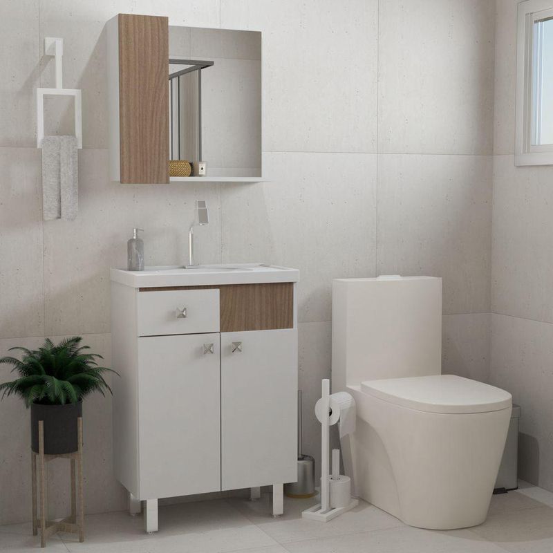 Kit Gabinete Banheiro Vittoria 60x34cm JequitibáConjunto Gabinete para Banheiro Vittoria 60x34 cm Jequitibá -Gabinete Vittoria para banheiro com design moderno e acabamento em MDF 15mm de alta qualidade. O tampo em mármore sintético agrega sofisticação e resistência, ideal para ambientes internos.Conta com uma gaveta e duas portas com dobradiças amortecedoras, garantindo fechamento suave e maior durabilidade. O modelo com pés facilita a limpeza do banheiro.A espelheira acompanha uma porta e uma prateleira, proporcionando mais organização ao seu espaço.Este produto não acompanha torneira nem válvula, para que você possa escolher conforme sua necessidade.A manutenção é simples: recomendamos limpeza com detergente neutro e esponja macia, evitando produtos químicos agressivos.Garantia de 3 meses contra defeitos de fabricação, assegurando sua tranquilidade e qualidade no investimento.Características Gerais do Produto: - Altura: 87 cm - Garantia: Garantia de fábrica 3 meses - Largura: 60 cm - Madeira: MDF - MDP 15mm - Marca: Venturi - Material Estrutura: MDF - MDP 15mm - Material da Cuba: Cuba em Pedra Ardósia com Pintura PU - Montagem Necessária?: Não - Pedra: Pedra Ardósia - Peso: 28 kg - Profundidade: 34 cm - Tipo de Instalação: De Chão (com 4 pés fixos em plástico)Acompanha o produto: - 1 Gabinete, 1 Tampo, 1 Espelheira Garantia: - 90 dias após o recebimento do produto