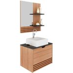 Kit Gabinete E Espelheira De Banheiro 60 Cm Com Cuba Sâmia Amêndoa/mármore LunarO Kit Gabinete e Espelheira de Banheiro 60 cm com Cuba Sâmia é perfeito para transformar o ambiente com sofisticação e praticidade. Produzido em MDP de qualidade, o gabinete e a espelheira recebem acabamento em BP e pintura UV, que oferecem proteção e beleza duradoura. O detalhe ripado na frente do gabinete e na base da espelheira garante um toque moderno e elegante ao conjunto.Dimensões do Gabinete Suspenso para Banheiro:- Altura: 44,7 cm- Largura: 60 cm- Comprimento: 38,7 cmDimensões da Espelheira Suspensa para Banheiro:- Altura: 44,7 cm- Largura: 60 cm- Comprimento: 38,7 cmDimensões da Cuba para Gabinete de Banheiro:- Altura: 11,5 cm- Largura: 35 cm- Comprimento: 34 cmCaracterísticas do Armário de Banheiro 60 cm com Cuba:- Estrutura em MDP;- Acabamento em BP e parte pintura UV;- 1 porta basculante;- 1 gaveta com corrediças metálicas;- Detalhe em ripado;- Suporta até 10 kg tampo e 3 kg gaveta e interno;- Cuba em mármore sintético e acabamento em brilho polido;- Não acompanha torneira;- Não acompanha objetos de decoração;Características do Armário Espelheira de Banheiro:- Estrutura em MDP;- Acabamento em BP e parte pintura UV;- 2 Prateleiras;- Detalhe em ripado na base;- Cada prateleira suporta até 3 kg;- Não acompanha objetos de decoração;- Não nos responsabilizamos pela montagem dos produtos. Todos os produtos acompanham acessórios para que sejam montados.- Não nos responsabilizamos, no ato da entrega, por subir escadas/elevadores ou transporte por guincho em apartamentos. Eventuais despesas são de responsabilidade do comprador;- Confira as dimensões deste produto e certifique-se de que passará normalmente por supostos elevadores, portas, escadas e/ou corredores de sua residência- Não aceitamos devolução após o período de arrependimento de 7 dias corridos.Características Gerais do Produto: - Altura: Gabinete: 44,7 cm/Espelheira: 44,7 cm/Cuba: 11,5 cm - Ideal para: Banheiro - Informações Adicionais: 1 gaveta com corrediças metálicas/2 Prateleiras/Não acompanha torneira - Largura: Gabinete: 60 cm/Espelheira: 60 cm/Cuba: 35 cm - Material: Gabinete e Espelheira: Estrutura em MDP / Cuba: Mármore sintético - Pintura: Detalhe em ripado - Portas: 1 Porta - Profundidade: Gabinete: 38,7 cm/Espelheira: 38,7 cm/Cuba: 34 cm - Tipo de Porta: Porta Basculante - Acabamento: Acabamento em BP e parte pintura UV - Informações Adicionais: - Não nos responsabilizamos pela montagem dos produtos. Todos os produtos acompanham acessórios para que sejam montados. - Não nos responsabilizamos, no ato da entrega, por subir escadas/elevadores ou transporte por guincho em apartamentos. Eventuais despesas são de responsabilidade do comprador; - Confira as dimensões deste produto e certifique-se de que passará normalmente por supostos elevadores, portas, escadas e/ou corredores de sua residência; - Não aceitamos devolução de produtos com caixas violadas ou materiais danificados, confira a quantidade de volumes e se o que está sendo entregue corresponde com a mercadoria adquirida, não aceitamos devolução após o período de arrependimento de 7 dias corridos.Acompanha o produto: - 1 x Espelheira para Banheiro 60 cm com 2 Prateleiras Sâmia1 x Gabinete de Banheiro 60 cm 1 Porta 1 Gaveta Sâmia1 x Cuba para Gabinete de BanheiroManual de MontagemAcessórios de MontagemGarantia: - 3 Meses