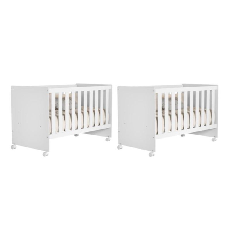 Kit Gêmeos Berço Americano Tico Branco Fosco - Reller Móveis Branco FoscoKit Gêmeos Berço Americano Tico - Reller Móveis O Kit Gêmeos Berço Americano Tico é composto por dois berços que oferecem segurança, conforto para o quarto do bebê. Fabricados em 100% MDF, possuem pintura UV, estrado em MDF com 3 regulagens de altura, cantos arredondados e rodízios com trava, facilitando a rotina e garantindo mais proteção. O modelo segue o padrão americano, acompanha suporte para mosquiteiro e é certificado pelo INMETRO, assegurando qualidade e durabilidade para o dia a dia.ESPECIFICAÇÕES: - Estrutura em MDF - Pintura UV - Padrão americano - 3 Regulagens de altura do estrado - Estrado em MDF - Cantos arredondados - 4 Rodízios, sendo 2 com trava - Acompanha suporte para mosquiteiro - Colchão recomendado 130 x 70 cm - Certificado pelo INMETRO - Não acompanha colchão Dimensões: Tamanho do Produto (L x A x P): 133 x 91 x 76 cm Garantia: 3 meses Montagem: O Produto vai desmontado com manual e todos acessórios. Recomendamos que a montagem seja feita por um profissional Recomendação de Limpeza: Utilize pano levemente úmido Observações: - A LOJA se responsabilizará pela entrega dos produtos até aonde as rodovias alcançam, entregas fluviais ou aéreas devem ser cotadas a parte. - As imagens são ilustrativas, não acompanham objetos de decoração. - Pode haver alguma diferença de tonalidade entre a imagem e o produto, por conta do tratamento de imagens e a calibração de cores da sua tela. - A montagem será de responsabilidade do comprador. Entregamos até a porta de entrada da residência ou até a portaria do condomínio. Não nos responsabilizamos, no ato da entrega, por subir escadas/elevadores ou transporte por guincho em apartamentos. Eventuais despesas são de responsabilidade do comprador. - Confira as dimensões do produto no momento da compra e certifique-se de que passará normalmente por supostos elevadores, portas, escadas e/ou corredores de sua residência. Para mais informações, acesse nossa Central de Atendimento. NA Cor: Branco Fosco