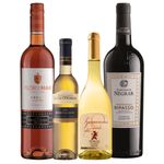 Kit Grandes Vinhos Doces – Uma seleção internacional para paladares exigentes Descubra o mundo dos vinhos doces com este kit exclusivo que reúne rótulos premiados e autênticos de diferentes regiões vinícolas. Uma verdadeira viagem sensorial por Portugal, Áustria, Itália e Hungria, ideal para quem aprecia complexidade, elegância e doçura equilibrada.O que compõe este kit:Casa Ermelinda de Freitas Flor de La Mar Licoroso Moscatel de Setúbal (500ml) Um clássico português, com aromas intensos de frutas cítricas, mel e flor de laranjeira. Encorpado, doce e persistente, perfeito para acompanhar sobremesas ou como digestivo.Lenz Moser Prädikatswein Beerenauslese (375ml) Vinho austríaco de colheita tardia, elaborado com uvas selecionadas afetadas pela “podridão nobre”. Notas de damasco, mel e frutas tropicais, com acidez vibrante e final longo.Cantina di Negrar Valpolicella Ripasso Clássico Superiore (750ml) Embora não seja doce, este tinto encorpado e elegante traz complexidade ao kit. Produzido pelo método “ripasso”, combina frutas maduras, especiarias e taninos suaves.Leonis Selection Tokaj Szamorodni Sweet (500ml) Um tesouro da Hungria, com notas de frutas secas, mel e nozes. Doçura equilibrada com acidez marcante, ideal para harmonizar com queijos azuis ou foie gras.Harmonizações sugeridas: Sobremesas finas, queijos especiais, frutas secas, pratos exóticos ou simplesmente momentos de contemplação.Presenteie com sofisticação ou desfrute com prazer! Este kit é perfeito para amantes de vinhos doces e colecionadores que buscam diversidade, qualidade e experiências únicas.