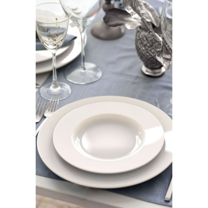 Kit Jogo Prato Fundo Lanche Tramontina Elena 12 Pessoas 12Pçs - Elegância para a sua cozinha Degustar uma sopa de capeletti deliciosa ou um creme de moranga, fica muito mais especial com o prato fundo Tramontina Elena em porcelana 23 centímetros de diâmetro. Desenvolvido em porcelana exclusiva e tradicional Tramontina, ele garante translucidez, excelente brilho e brancura, alta resistência mecânica e porosidade próxima de zero, que evita a proliferação de fungos e bactérias. Sua inspiração é nas chefs de cozinha e na magia que as envolve durante o seu trabalho e entrega de cardápios com muita paixão! Especificações: Uso: Resistente a micro-ondas, Resistente a lava-louças; Cor: Branco; Fabricado em Porcelana; Alta Resistência (borda reforçada); Porosidade próxima de zero, evitando a proliferação de fungos e bactérias; Coleção: Elena; Recomendações de uso: Ao usar o produto pela primeira vez, lavar bem a peça com esponja macia e sabão neutro; Lavar as peças utilizando esponja macia e sabão neutro; Não levar as peças ao forno; Não submeter as peças a chama direta; Conteúdo da embalagem: 12 Prato Fundo Branco Tramontina com 23cm de Diâmetro; Características Gerais do Produto: • Material: Porcelana • Modelo: Pratos Fundo Tramontina • Cor: Branco • Dimensões aproximadas: Diâmetro 23cm Garantia: • Garantia contra avarias no transporte
