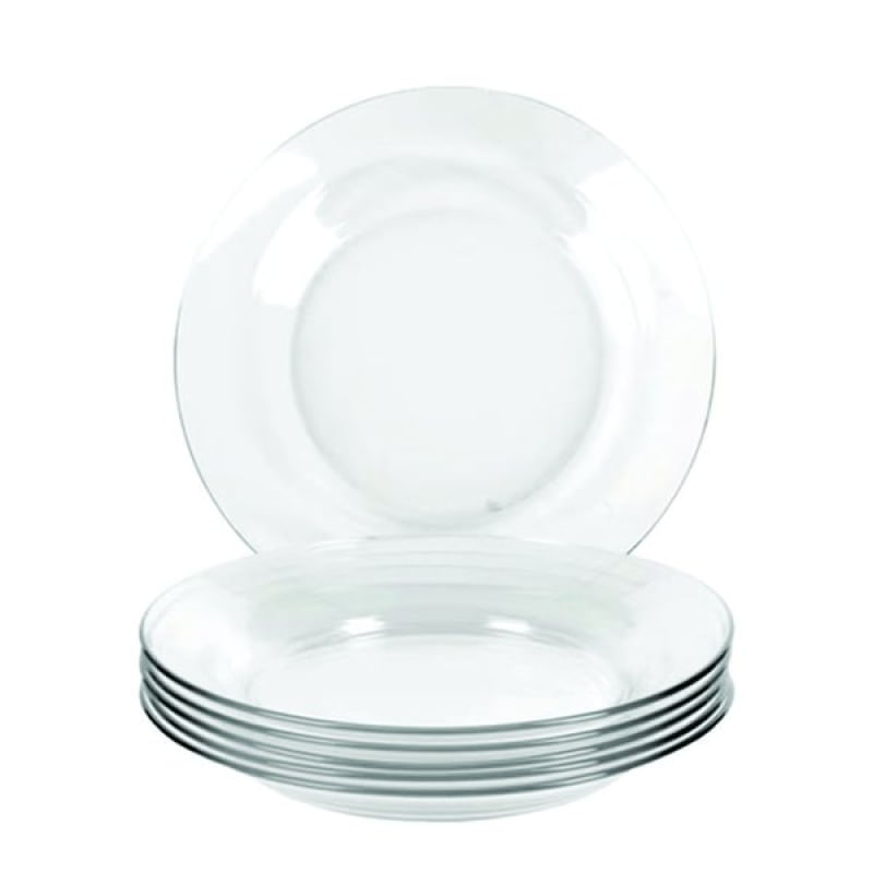 Kit Jogo Prato Fundo Transparente em Vidro 10 Peças 22,5cm - Os pratos fundos possuem um designer simples porém elegante e sofisticado, que esbanja modernidade e leveza ao ambiente. Com um excelente acabamento e com design liso combina com qualquer decoração de sua cozinha. Pode ir ao micro-ondas, freezer, geladeira e lava - louças. Especificações: Uso: Resistente a micro-ondas, freezer a lava-louças Material: Vidro Formato: Redondo Cor: Transparente Conteúdo da embalagem: 10 Pratos Fundos com 22,5cm Características Gerais do Produto: Garantia: • Garantia contra avarias no transporte