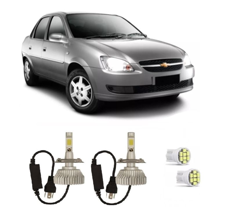 Kit Lâmpada Super Led 6000k - Farol de Alto/Baixo Corsa Classic (2002 à 2009):Com durabilidade e economia muito superiores aos outros tipos de lâmpadas, as Super LED são uma excelente escolha para quem deseja ter um visual diferenciado no que tange a iluminação veicular, pois proporcionam o efeito xênon sem necessidade de reatores e sem a possibilidade de danificar o farol do seu carro, além da tecnologia LED, que possui grande durabilidade, essas lâmpadas possuem resistência, a vibrações, evitando dores de cabeça com trocas de lâmpadas. Este kit de lâmpadas possui tonalidade 6000k, baixo consumo, pode ser utilizado em carros de 12V com garantia de vida útil prolongada. A tonalidade branca levemente azulada é eficiente para melhorar a visualização de placas e sinalizações.Especificação Técnica: Compatível com Corsa Classic (2002 à 2009) Modelos: 2 Lâmpadas de LED H4 (Farol Alto e Baixo) 2 lâmpadas c/ 8 leds frontal (Farolete) Base da Lâmpada em Alumínio e 6000K Extremamente BrancaNão Necessita de Reator ou Cooler para FuncionamentoVida Útil de 10.000 à 30.000 horas de FuncionamentoEconomia de 60% da Bateria e Voltagem de 12V Produto novo e importado Obs.: Esses modelos de lâmpadas são para faróis originais de fábrica. CONFIRA ANTES DE EFETUAR A COMPRA, SE O MODELO DE LÂMPADAS DO SEU VEÍCULO CONDIZ COM O ANÚNCIO, PARA TROCAS POSTERIORES, FRETE POR RESPONSABILIDADE DO COMPRADORGARANTIA: 3 MESES TODOS OS PRODUTOS COMERCIALIZADOS PELA GOLDEN PARTES ACOMPANHAM NOTA FISCAL E GARANTIA