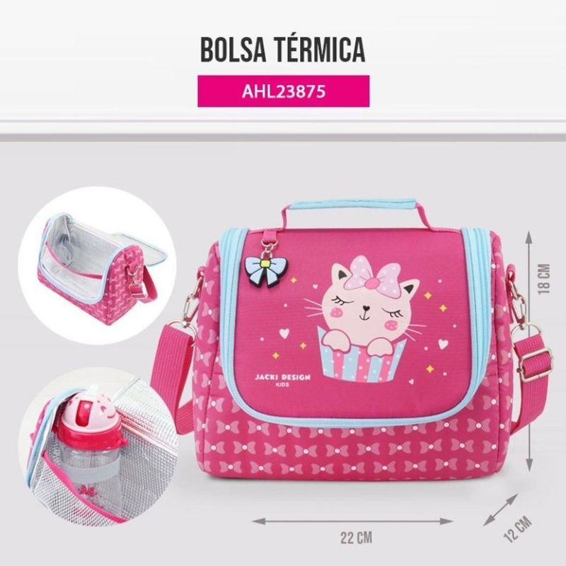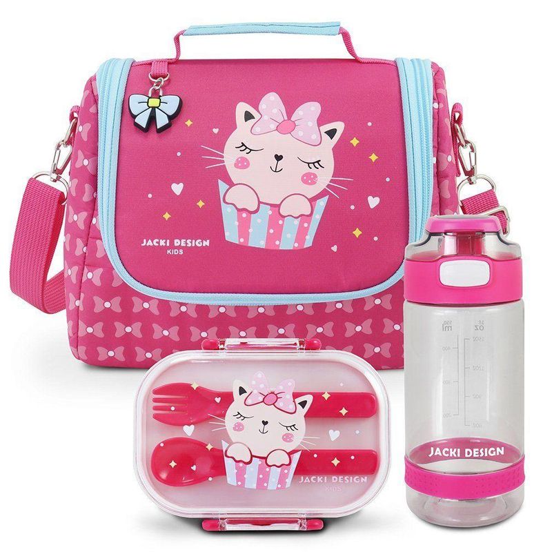 Kit Lancheira Térmica Infantil E Pote P/ Lanche Com Garrafa 550ml PinkKit Lancheira Térmica Infantil e Pote p/ Lanche com Garrafa 550ml Pink -Lancheira Térmica InfantilTrazendo a necessidade do dia-a-dia como prioridade, a Jacki Design trouxe para os pequenos a nova bolsa térmica. Tem capacidade para 6950ML. Possui alça de mão, alças de ombro ajustáveis, e bolso interno para carregar garrafa. A bolsa térmica é feita de microfibra resistente e a parte interna é forrada com folhas de alumínio, conservando os alimentos frescos por mais tempo. É ideal para passeios, viagens ou escolinha. Conheça a linha completa da coleção PIMPOLHOS e complete o seu kit! CUIDADOS GERAIS: Limpe o produto com um pano úmido. Caso necessário, use sabão neutro ou álcool para higienizar o local. Deixe secar na sombra.ATENÇÃO: Para preservar a vida útil do produto, recomendamos não deixar o produto de molho, não levar a máquina de lavar e também não utilizar produtos químicos.Medidas: Comprimento: 32cm x Largura: 18cm x Altura: 12cmPote p/ LancheA hora do lanche ficou muito mais divertida com o pote para lanche de 2 andares da coleção PIMPOLHOS. Com capacidade para 400ml, possui divisórias na parte inferior para facilitar a separação dos alimentos e uma bandeja com encaixe para os talheres que acompanham o kit; e tampa com fechamento em travas de segurança. É perfeito para passeios, viagens e escolinha. Produto livre de BPA e com qualidade Jacki Design. Conheça a linha completa da coleção PIMPOLHOS e complete o seu kit! (INSTRUÇÕES DE USO: Retire a tampa antes de levar ao micro-ondas; usar somente para aquecer comida, não para cozinhar; Vai ao freezer e lava-louças; Temperatura de uso: -20°C ~100°C; Limpe usando uma esponja macia e detergente neutro.Medidas: Comprimento: 13.7cm x Largura: 10.2cm x Altura: 8.1cmGarrafa 550mlA Garrafa Squeeze de 550ml é ideal para levar água, suco ou chá para passeios ou escola. Possui bico, trava de segurança e alça de mão embutida na tampa. É leve e fácil de carregar. Produto com qualidade Jacki Design. Conheça a linha completa da coleção JÚNIOR e complete o seu kit! (INSTRUÇÕES DE USO: Não vai ao micro-ondas ou lava-louças; Temperatura de uso: -15°C ~50°C; Limpe usando uma esponja macia e detergente).Medidas: Comprimento: 7.5cm x Largura: 7.5cm x Altura: 18.2cm