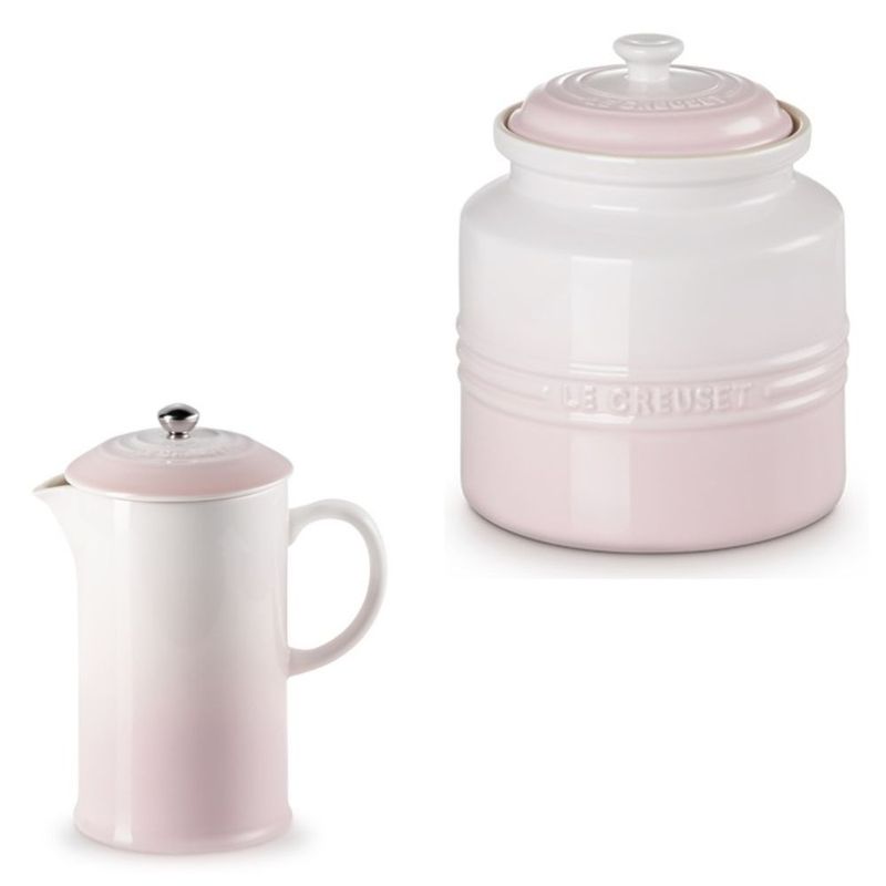 KIT LE CREUSET PRENSA FRANCESA E POTE DE BISCOITO 2,4L EM CERÂMICA SHELL PINK