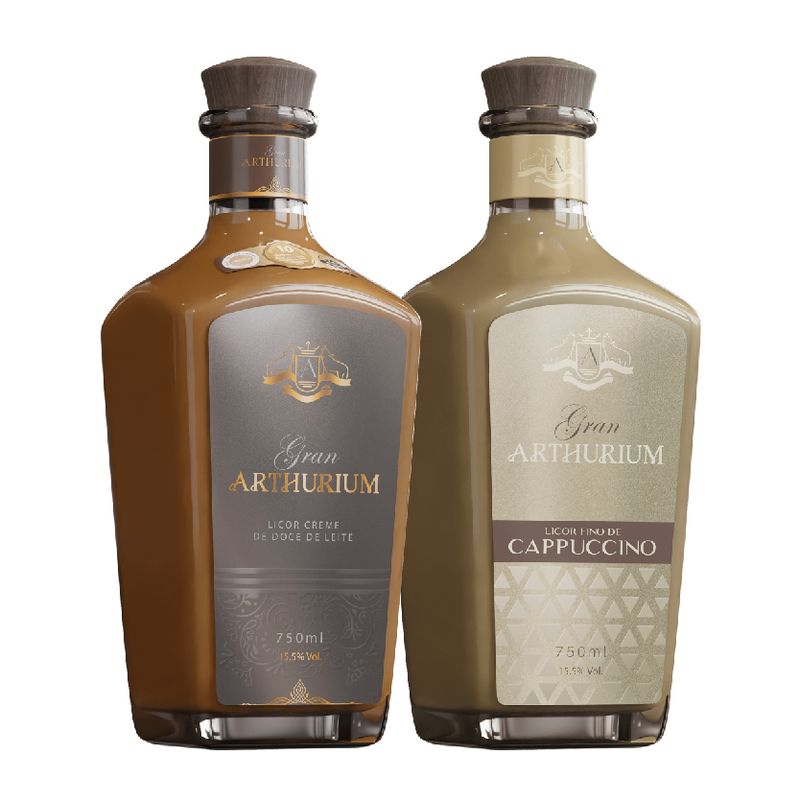 O Kit Licores Gran Arthurium Doce de Leite + Cappuccino 750ml reúne duas das criações mais refinadas da marca mineira em um combo irresistível para apreciadores de licores premium. Este duo apresenta o medalha internacional Licor Creme de Doce de Leite 750ml, premiado no USA Spirits Ratings (2022) e London Spirits Competition (2023), ao lado do sofisticado Licor Fino de Cappuccino 750ml. O Licor Doce de Leite, produzido com tradicional doce de leite Viçosa e 15,5% vol., oferece sabor encorpado e cremoso que conquista paladares exigentes. Já o Licor Cappuccino combina a intensidade do café com suavidade irresistível, criando experiência sensorial única desde o primeiro gole. Ambos os licores são elaborados com ingredientes premium, proporcionando degustação sofisticada para ocasiões especiais. Podem ser apreciados puros, gelados, à temperatura ambiente ou como base para coquetéis elaborados, oferecendo versatilidade completa. Este kit representa a essência da gastronomia mineira e a paixão pelo café brasileiro em duas garrafas excepcionais. Ideal para presentear, degustar em momentos especiais ou compor sua coleção de licores premium. Produtos destinados exclusivamente para maiores de 18 anos. Aprecie com moderação.
