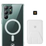 Kit Magsafe - Capa Case Capinha E Carteira Com Kickstand Para Samsung Galaxy S22 Ultra - GshieldLEIA ANTES DE COMPRAROs fabricantes de smartphones e smartwatches possuem variações de tamanho para cada tipo de produto, geralmente as mudanças de dimensões são acompanhadas pelo tamanho em polegadas ou pelas palavras: PLUS, +, PRO, PLAY, LITE, SE, MM, entre outras, confira antes da compra se seu dispositivo é compatível com o produto anunciado e evite transtornos em sua compra. Qualquer dúvida utilize o campo de perguntas no final da página ou leia as avaliações de outros consumidores.CarteiraA Carteira MagSafe da Gshield, é perfeita para você que não abre mão de qualidade!Utilize o melhor da tecnologia MagSafe, e tenha seus cartões sempre em mãos com segurança, estilo e sofisticação! Confeccionada em couro macio de alta qualidade e com acabamento reforçado nas costuras, a MagSafe é compacta, elegante e discreta, ideal e prática para uso no dia a dia. A carteira magsafe conta com ímã integrado para facilitar a conexão do acessório a uma capa MagSafe ou diretamente nos smartphones que possuem a tecnologia; e comporta até 3 cartões.A carteira no modelo Kickstand possui uma alça que integra o acessório, possibilitando ler, assistir séries ou filmes confortavelmente sem as mãos enquanto o celular é apoiado em segurança!CapaA Capa MagSafe transparente para Samsung Galaxy S22 Ultra, da Gshield, foi projetada para dar mais segurança ao seu smartphone!Com design fino, leve e confortável, a capa além de proteger o seu celular irá manter o brilho e estilo original do aparelho!Desenvolvida com a combinação de policarbonato transparente, ela se encaixa perfeitamente ao smartphone e todos os materiais e coberturas são tratados para não amarelarem com o tempo.A tecnologia MagSafe na capa forma um anel de ímãs na traseira do celular para se conectar por magnetismo aos carregadores sem fios. Antes existia o risco de o usuário posicionar o aparelho de forma errada na base carregadora; agora, o MagSafe garante que o aparelho será sempre atraído para o ponto certo.Não compatível com uso de suporte magnético / Utilizar a placa para suporte magnetico poderá impossibilitar o carregamento WirelessOBS: O smartphone quando superaquecido durante o uso e/ou carregamento, transmite um calor que provoca uma reação química do material da capa que pode ocasionar uma aparência amarelada na mesma.Video demonstrativo: Clique aquiESPECIFICAÇÕESCarteira Marca: Gshield Material: Couro sintético de alta qualidade Cor: Branca Compartimentos: 1x Compartimento para Cartão Tamanho: 9,5 x 6,5cm Uso indicado apenas para cartões, não é compatível com CNH e Identidade!Capa Material: Policarbonato de alta densidade Marca: Gshield Proteção: Contra impactos e riscos Dimensões: Dimensões exatas do aparelhoCOMPATIBILIDADECarteira Qualquer smartphone com tecnologia MagSafeCapa Samsung Galaxy S22 UltraITENS INCLUSOS 1x Capa MagSafe Transparente 1x Carteira Magsafe com KickstandGARANTIA 3 meses contra defeitos de fabricação + Garantia Vitalícia Co-Participativa Com decorrer do uso a capa pode apresentar arranhões pelo contato diário com superficiesSEGUROAconselhamos para uma proteção completa a compra dos planos de coberturas contra roubo, furto e danos da Gshield, conheça nossos planos COR: ÚNICA