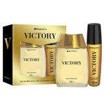 Kit Masculino Phytoderm Victory Deo Colônia 100ml + Body Spray 120ml Confiança, poder e uma fragrância inesquecível. O Kit Masculino Phytoderm Victory Deo Colônia 100ml + Body Spray 120ml foi desenvolvido para homens que gostam de marcar presença com elegância e atitude. Com uma fragrância intensa e envolvente, combina notas refrescantes, especiadas e amadeiradas, criando uma assinatura olfativa perfeita para quem deseja transmitir segurança e personalidade em qualquer ocasião. O que é e para que serve? O Kit Phytoderm Victory reúne Deo Colônia e Body Spray com a mesma fragrância marcante, proporcionando perfumação completa para o corpo. Além de perfumar intensamente, o Body Spray conta com ação desodorante que ajuda a proteger contra os odores da transpiração, garantindo sensação de frescor ao longo do dia. Benefícios e Diferenciais Kit completo com Deo Colônia e Body Spray; Fragrância masculina marcante e sofisticada; Ação desodorante que ajuda a combater odores da transpiração; Perfume versátil, ideal para o dia a dia ou ocasiões especiais; Combinação de notas frescas, especiadas e amadeiradas; Excelente opção para presentear; Qualidade da marca Phytoderm. Família olfativa Fougère | Amadeirada | Oriental — uma combinação envolvente que transmite força, elegância e personalidade. Pirâmide Olfativa Notas de Topo: Mandarina, Menta; Notas de Corpo: Canela, Flor de Laranjeira; Notas de Fundo: Patchouli, Baunilha. Conteúdo do kit 1 Deo Colônia Phytoderm Victory – 100ml; 1 Body Spray Phytoderm Victory – 120ml. Como usar Aplique a Deo Colônia nos pontos de maior pulsação do corpo, como pulsos, pescoço e atrás das orelhas. Utilize o Body Spray diretamente no corpo para reforçar a perfumação e proporcionar sensação de frescor durante o dia. Indicação de uso Uma fragrância marcante e versátil, ideal para o dia a dia e para momentos em que você deseja transmitir confiança, estilo e presença. Sobre a marca A Phytoderm é uma marca nacional presente no mercado há mais de três décadas. Inspirada na essência e na diversidade do brasileiro, desenvolve fragrâncias e produtos de cuidados pessoais que valorizam a beleza natural e a personalidade de cada pessoa. Advertências Uso externo; Produto inflamável; Evite contato com os olhos; Em caso de irritação, suspenda o uso; Manter fora do alcance de crianças; Conservar em local fresco e ao abrigo da luz.