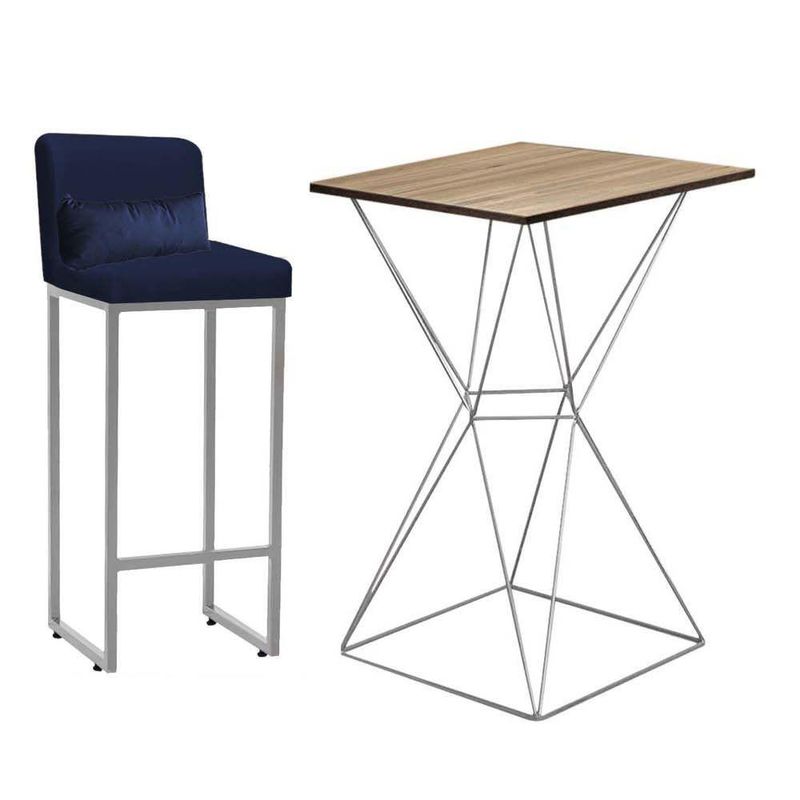 Kit Mesa Bistrô Lucca E 1 Banqueta Lucca Alta Com Encosto Tampo Carvalho Ferro Cinza Corino Azul Marinho E Almofada Azul Marinho - Ahazzo Móveis Cor Azul MarinhoMESA BISTRÔ LUCCA E BANQUETA ALTA LUCCA - Ahazzo MóveisIdeal para ambientes de lazer com sua família e amigos, possui estrutura reforçado para maior conforto.CARACTERÍSTICAS DA MESA:- Largura: 50 cm;- Altura: 92 cm;