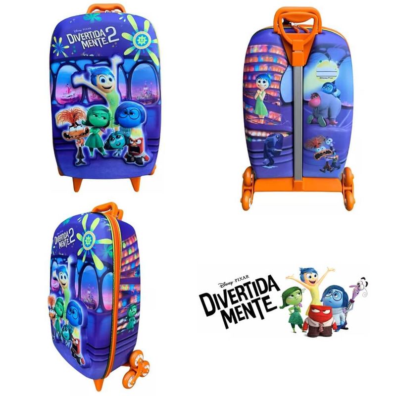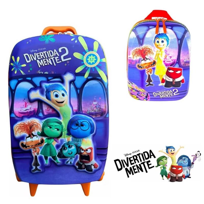 Kit Mochila 3D Com 6 Rodinhas + Lancheira Divetidamente Sala de Controle - DiplomataCom um design irresistível inspirado nas aventuras dos personagens de Divertidamente, o Kit de Mochila + Lancheira é a opção ideal para os fãs. É a melhor escolha para você que procura algo prático e funcional com muito estilo. As estampas lindas e cores vibrantes vão deixar a hora da escola mais divertida!Mochila - Confeccionada em EVA de alta qualidade e resistência;- Forma 3D termomoldada- Sistema de fechamento com zíper de qualidade abertura de 360º e fivelas em plástico ajustáveis que limitam a abertura da mala;- 3 Rodinhas, melhor segurança e conforto em qualquer tipo de piso;- Seu interior possui 01 compartimento por duas malhas elásticas;- Superfície interna e externa impermeáveis, o que protege contra sujeiras e facilita a limpeza, basta um pano úmido.- Área de identificação onde pode se colocar o nome da criança. Lancheira- Confeccionada em EVA de alta qualidade e resistência;- Forma termomoldada;- Sistema de fechamento com Zíper de qualidade abertura de 360º;- Seu interior possui 01 compartimento com uma malha elástica;- Possui 02 Alças de costas em Nylon, com fivelas de ajuste em plástico. - Alça de mão em Nylon na parte superior;- Área de identificação onde pode se colocar o nome da criança; Cuidados com a mochila e com a lancheira:- Não submeter a temperaturas a cima de 40ºC por períodos prolongados;- Não usar objetos pontiagudos ou cortantes;- Não usar álcool ou desinfetante podem danificar cor ou o formato. Em caso de Sujidade profunda pode usar detergente neutro.Imagens meramente ilustrativas, as cores podem variar em cada tela ou monitor.