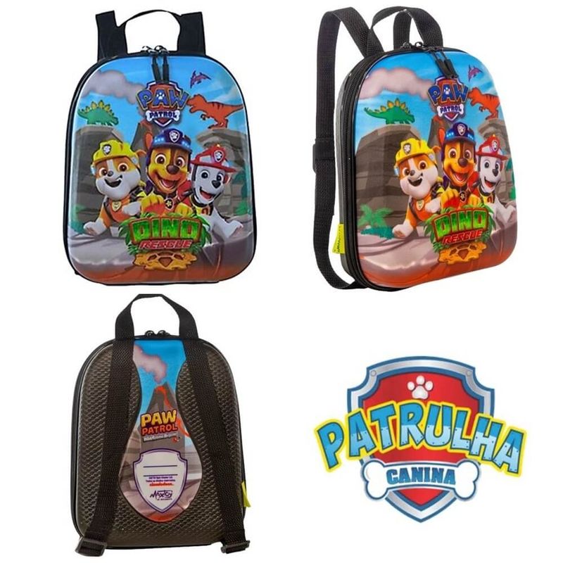 Kit Mochila 3D Com 6 Rodinhas + Lancheira Patrulha Canina Dino - Diplomata Nossos licenciados estão sempre em alta e trazem muito assunto pra liberar a criatividade na hora da brincadeira. Mochila - Confeccionada em EVA de alta qualidade e resistência; - Forma 3D termo moldada; - Sistema de fechamento com zíper de qualidade abertura de 360º e fivelas em plástico ajustáveis que limitam a abertura da mala; - 3 Rodinhas: melhor segurança e conforto em qualquer tipo de piso; - Dividida em 2 compartimentos com uma malha elástica; - Superfície interna e externa impermeáveis, o que protege contra sujeiras e facilita a limpeza (basta um pano úmido); - Área de identificação onde pode se colocar o nome da criança. Lancheira - Confeccionada em material de alta qualidade, logo frontal, excelente para o dia a dia da criançada. - Possui alça de mão; - Alça de costas reguláveis para melhor conforto; - Compartimento interno com rede e elástico; - Fechamento principal em zíper com abertura de 360º; - Dimensão aproximada: 26x21x9cm; - Material: EVA e poliéster. Cuidados com a mochila e com a lancheira: Não submeter a temperaturas a cima de 40ºC por períodos prolongados; Não usar objetos pontiagudos ou cortantes; Não usar álcool ou desinfetante podem danificar cor ou o formato. Em caso de Sujidade profunda pode usar detergente neutro. Imagens meramente ilustrativas, as cores podem variar em cada tela ou monitor.