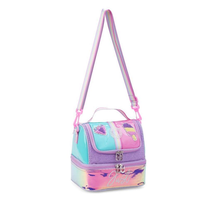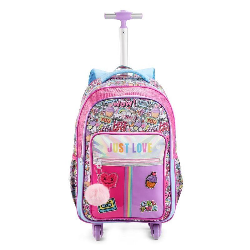 Kit Mochila De Rodinhas + Lancheira + Estojo Just Love Rainbow Chaveiro DenlexKit Mochila de Rodinhas + Lancheira + Estojo Just Love Rainbow Chaveiro Denlex -A mochila de rodinhas Just Love Denlex possui aproximadamente 48 cm de altura, 32 cm de largura e 15 cm de profundidade, estrutura reforçada, alça retrátil e rodas resistentes, garantindo mobilidade e conforto até para os dias mais cheios. Seu compartimento interno é espaçoso e ideal para cadernos, livros e materiais escolares, com bolsos laterais para garrafinha e zíper de alta durabilidade.A lancheira térmica possui 22 cm de altura, 20 cm de largura e 10 cm de profundidade, perfeita para conservar os alimentos sempre frescos. O interior revestido facilita a limpeza e mantém a temperatura por mais tempo, ideal para o lanche da escola ou passeios.O estojo Just Love Denlex mede 22 cm de comprimento, 8 cm de largura e 6 cm de altura, comportando lápis, canetas, borrachas e acessórios de forma organizada. Compacto e prático, ele complementa o conjunto com charme e funcionalidade.Com materiais de alta qualidade, acabamento resistente e visual alegre, o Kit Just Love Denlex é a escolha ideal para meninas que amam estudar com estilo. Perfeito para o uso escolar, viagens ou presente, este kit oferece excelente custo-benefício e acompanha 1 Mochila de Rodinhas + 1 Lancheira Térmica + 1 Estojo.