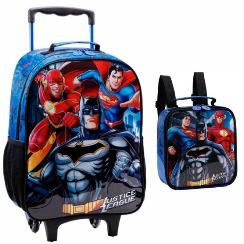 Kit Mochila de Rodinhas Infantil Liga da Justiça + Lancheira (Ref. 11864) - Xeryus As crianças vão ter mais um incentivo para a volta às aulas com o Kit Mochila de Rodinhas Infantil Liga da Justiça + Lancheira (Ref. 11864) - Xeryus. A lancheira Liga da Justiça é produzida em poliéster e é ideal para levar os lanches com muito mais alegria. Possui um compartimento com revestimento em material que ajuda a manter o frescor dos alimentos por mais tempo. Espaçosa e confeccionada em material resistente, além de conter estampas divertidas que estimulam a criatividade e imaginação dos pequenos. Detalhes: Tamanho: 16 Alça de mão em nylon Painel frontal PVC Cristal Especificações: Embalagem (C x A x L): 35 x 45 x 25 cm Embalagem (Peso): 1.1 kg Certificado: Órgãos Autorizados - OCP´S (Organismos de Certificação de Produtos) Lancheira Liga da Justiça Tamanho(L x A x P): 21 x 25 x 15cm Embalagem com 01 Mochila + Lancheira Imagens meramente ilustrativas, as cores podem variar em cada tela ou monitor.