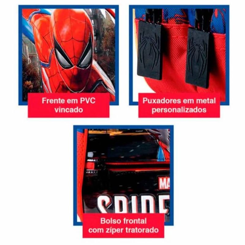 Kit Mochila de Rodinhas Infantil Spider Man R1 - Xeryus As crianças vão ter mais um incentivo para a volta às aulas com o Kit Mochila de Rodinhas Infantil Spider Man R1 - Xeryus. Através da identidade do Homem-Aranha, o tímido e desajeitado Peter Parker pode ser tudo o que não é: solto, engraçado e destemido. Detalhes: Tamanho: 16 Alça de mão em nylon Painel frontal PVC Cristal Produzida em poliéster resistente e estampado Compartimento principal amplo 2 bolsos laterais em mesh com elástico Zíper com puxadores simples Carrinho em metal com travas Recomendação: para crianças a partir de 03 anos de idade Especificações: Embalagem (C x A x L): 30 x 40 x 15 cm Embalagem (Peso): 900gr Certificado: Órgãos Autorizados - OCP´S (Organismos de Certificação de Produtos) Embalagem com 01 Mochila Imagens meramente ilustrativas, as cores podem variar em cada tela ou monitor.