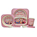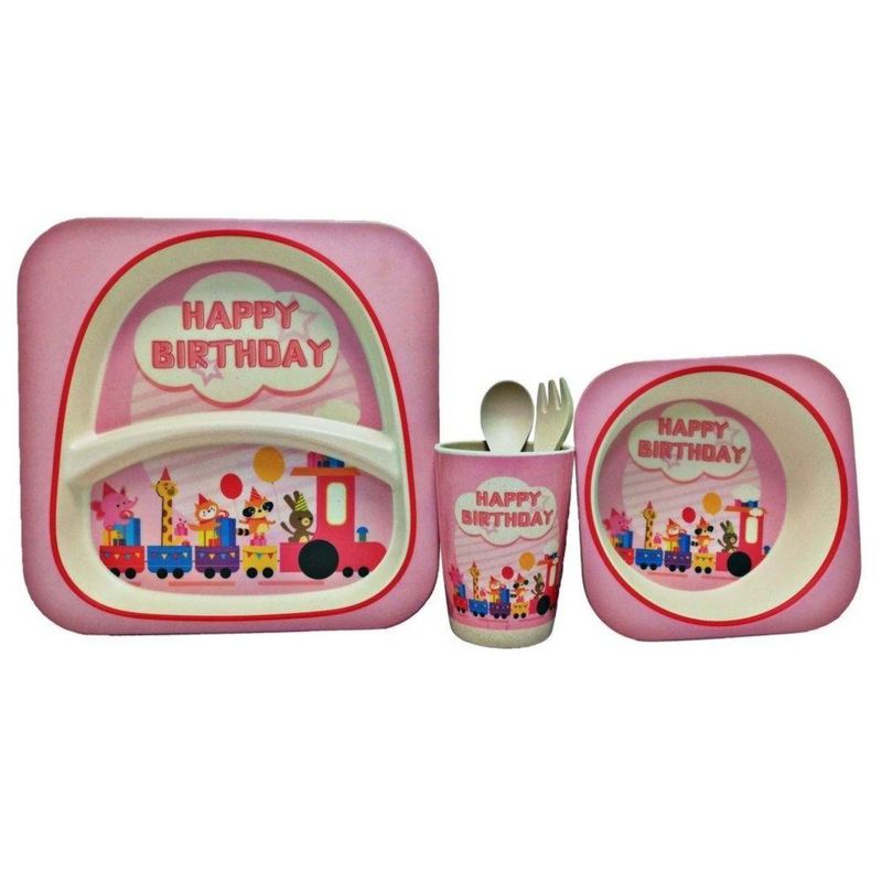 BebêsAlimentaçãoPratoKit P/Refeição Inf. Fibra Bambu 5PCS -Happy Birthday -Quanhe