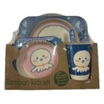Os pequenos vão adorar ter seus próprios utensílios com seu animal favorito. Em cores divertidas e desenhos animados, tornando a hora das refeições muito mais deliciosa. Pensados especialmente para as mãos pequenas das crianças. O Kit de Alimentação é feito inteiramente em fibra de bambu, ele não libera toxinas, super resistente, biodegradável e altamente durável. Facilmente lavável, pode ser levado a máquina de lavar louça e não pode ser levado ao forno ou micro-ondas. Especificações: • Marca: Quanhe • Referência: N214677-4 • Material: Bamboo • Dimensões do copo: 70x70x96mm / Aproximadamente 200ml • Dimensões Prato : 143x143x40mm • Dimensões Tigela Quadrada: 214x214x25mm • Garantia do Fornecedor: 03 meses contra defeitos de fabricação • Validade: Indeterminada Itens Inclusos: • 01 Prato • 01 Tigela • 01 Copo • 01 Garfo • 01 Colher *As cores podem variar entre as imagens mostradas acima e o produto. Imagens meramente ilustrativas.
