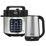 Esse kit contém os seguintes itens:Panela de Pressão Elétrica Digital 5,7L Oster - OPAN930Panela elétrica de pressão OsterA Panela Elétrica de Pressão Digital Multifuncional Oster® é a panela de pressão elétrica com o maior número de sistemas de segurança do mercado brasileiro. Com 18 dispositivos de segurança, 12 funções pré-programadas e 5,7 L de capacidade, ela foi desenvolvida para famílias que valorizam refeições saudáveis e momentos de qualidade compartilhados. Tecnologia avançada que se encaixa na rotina, oferecendo funcionalidade e tranquilidade no preparo do dia a dia.- 16 travas de proteção + 2 válvulas de segurançaSistema integrado que monitora e protege em múltiplas camadas: controle de pressão, detecção de temperatura, bloqueio inteligente da tampa e válvulas de alívio automático.- Acabamento antiaderente: Facilita tanto o preparo quanto a limpeza, tornando a manutenção rápida e prática.- 12 funções pré-programadas: Arroz, feijão, sopas, carnes ensopadas, legumes no vapor e muito mais. A panela ajusta automaticamente tempo, temperatura e pressão para cada preparo.- 5,7 L de capacidade: Espaço ideal para preparar refeições completas para toda a família sem precisar repetir preparos.- Painel digital touch: Design moderno e intuitivo que facilita a operação e mantém a bancada clean e sofisticada.- 1000 W de potência: Preparo eficiente com cozimento uniforme, mantendo nutrientes e o sabor autêntico de cada receita.- Acessórios inclusos: Acompanha dosador de medida e colher para maior precisão e praticidade no dia a dia.Dimensões [LxAxP]: 160x245x235mmSelo de Segurança: OCP SGSGarantia (meses): 12Chaleira Elétrica Oster Inox 2L Ultra - OCEL840Eficiente e vai economizar um tempo precioso no seu dia a dia. O jarro em Inox 340 é mais resistente, durável e ainda leva um toque de sofisticação para a sua cozinha.- 2L de Capacidade: Perfeita para cozinhar de forma prática, rápida e segura e para preparar cafés e chás. - INOX 340: Alta qualidade, eficiência e estilo: Um produto para quem valoriza a durabilidade, a sustentabilidade e a sofisticação. O jarro em Inox 340 possui qualidade superior, alta eficiência energética e vai deixar sua cozinha mais elegante. - Alta Potência para uma Rotina mais Pratica: A Chaleira Elétrica Inox é perfeita tanto para o home office quanto para o dia a dia. Com 1200W (127v) ou 1850W (220v), ela ferve a água rapidamente, levando mais praticidade para a sua rotina. - Segurança em Dobro: O sistema de desligamento automático desativa a chaleira quando a água atinge a fervura. A base antiderrapante traz mais estabilidade para o uso diário. - Indicador luminoso - Base com porta-fio - Abre fácil: tampa com puxador - Alça ergonômica isotérmicaDimensões [LxAxP]: 215x240x150mmSelo de Segurança: OCP SGSGarantia (meses): 12