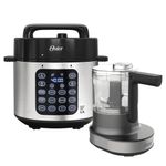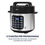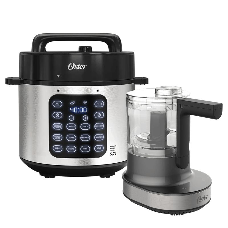 Esse kit contém os seguintes itens:Panela de Pressão Elétrica Digital 5,7L Oster - OPAN930Panela elétrica de pressão OsterA Panela Elétrica de Pressão Digital Multifuncional Oster® é a panela de pressão elétrica com o maior número de sistemas de segurança do mercado brasileiro. Com 18 dispositivos de segurança, 12 funções pré-programadas e 5,7 L de capacidade, ela foi desenvolvida para famílias que valorizam refeições saudáveis e momentos de qualidade compartilhados. Tecnologia avançada que se encaixa na rotina, oferecendo funcionalidade e tranquilidade no preparo do dia a dia.- 16 travas de proteção + 2 válvulas de segurançaSistema integrado que monitora e protege em múltiplas camadas: controle de pressão, detecção de temperatura, bloqueio inteligente da tampa e válvulas de alívio automático.- Acabamento antiaderente: Facilita tanto o preparo quanto a limpeza, tornando a manutenção rápida e prática.- 12 funções pré-programadas: Arroz, feijão, sopas, carnes ensopadas, legumes no vapor e muito mais. A panela ajusta automaticamente tempo, temperatura e pressão para cada preparo.- 5,7 L de capacidade: Espaço ideal para preparar refeições completas para toda a família sem precisar repetir preparos.- Painel digital touch: Design moderno e intuitivo que facilita a operação e mantém a bancada clean e sofisticada.- 1000 W de potência: Preparo eficiente com cozimento uniforme, mantendo nutrientes e o sabor autêntico de cada receita.- Acessórios inclusos: Acompanha dosador de medida e colher para maior precisão e praticidade no dia a dia.Dimensões [LxAxP]: 160x245x235mmGarantia (meses): 12 mesesSelo de Segurnça: OCP SGSProcessador de Alimentos Oster Up & Down com Painel Touch - OMPR550- Porta-Fio: Com capacidade de 900ml, Processador Oster® Up&Down é perfeito para preparar molhos, caldos e outros tipos de receitas. Na hora de lavar, é só desmontar. Na hora de guardar, o porta-fio na base garante que nada fique fora de lugar.- Mais Segurança Durante o Preparo: Para garantir a segurança no preparo das suas receitas, o Processador Oster® Up&Down possui dupla trava de segurança, na tampa e na base. Além disso, o processador tem uma estrutura atóxica, pois o material do jarro é BPA Free e livre de Bisfenol A.- Tecnologia Up&Down Processamento 2X Mais Rápido: Perfeito para você fazer diversos tipos de receitas até 2x mais rápido. A tecnologia Up&Down permite que a lâmina suba e desça durante o uso, garantindo que o alimento seja processado por completo, sem pedaços maiores.- Painel Touch: Com design moderno e fácil de usar, oferece duas funções de processamento, contínuo e intermitente, para facilitar o seu dia a dia.Dimensões [LxAxP]: 315x305x380mmGarantia (meses): 12 mesesSelo de Segurnça: OCP SGS